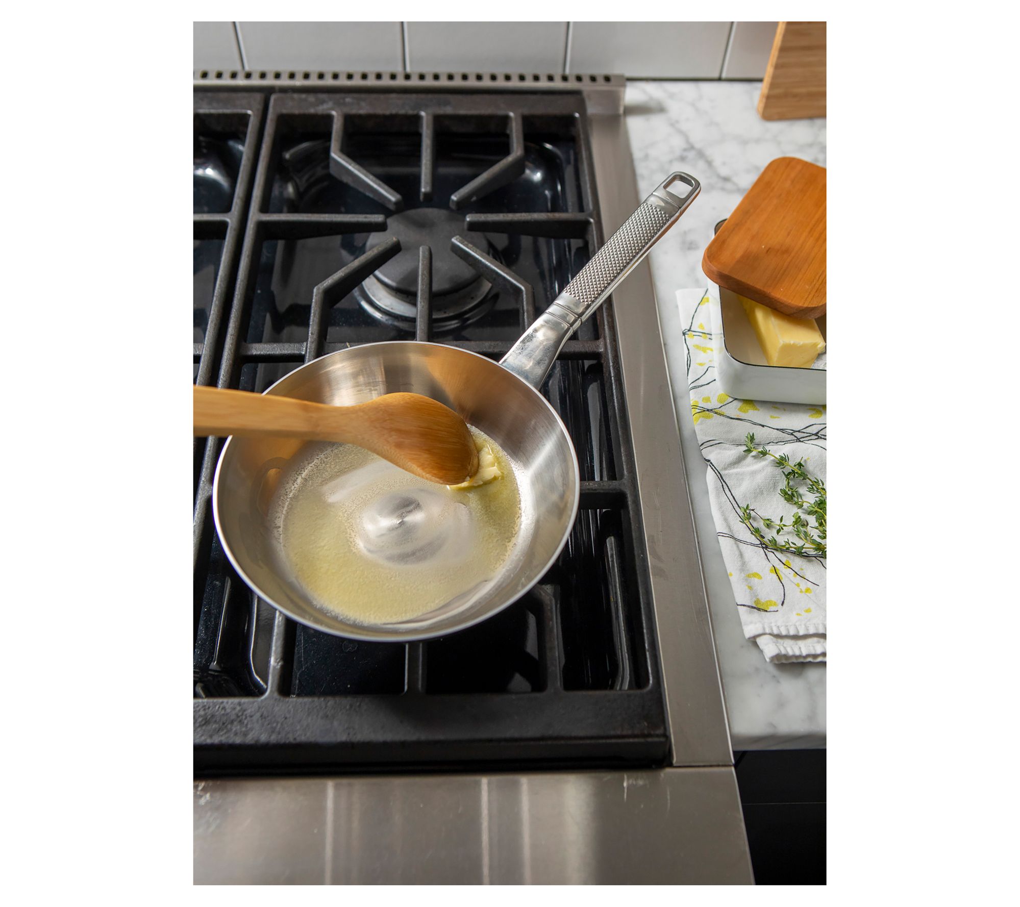 For those who enjoy mastering culinary skills, this three-piece stainless steel skillet and sauteuse set offers professional performance right at home. With an aluminum core for even heat distribution and cool, comfortable handles, you'll enjoy a secure grip during even the most precise cooking tasks. Compatible with all cooktops and dishwasher-safe for easy cleanup, this set is designed with gourmet features for the home chef. From Saveur Selects.