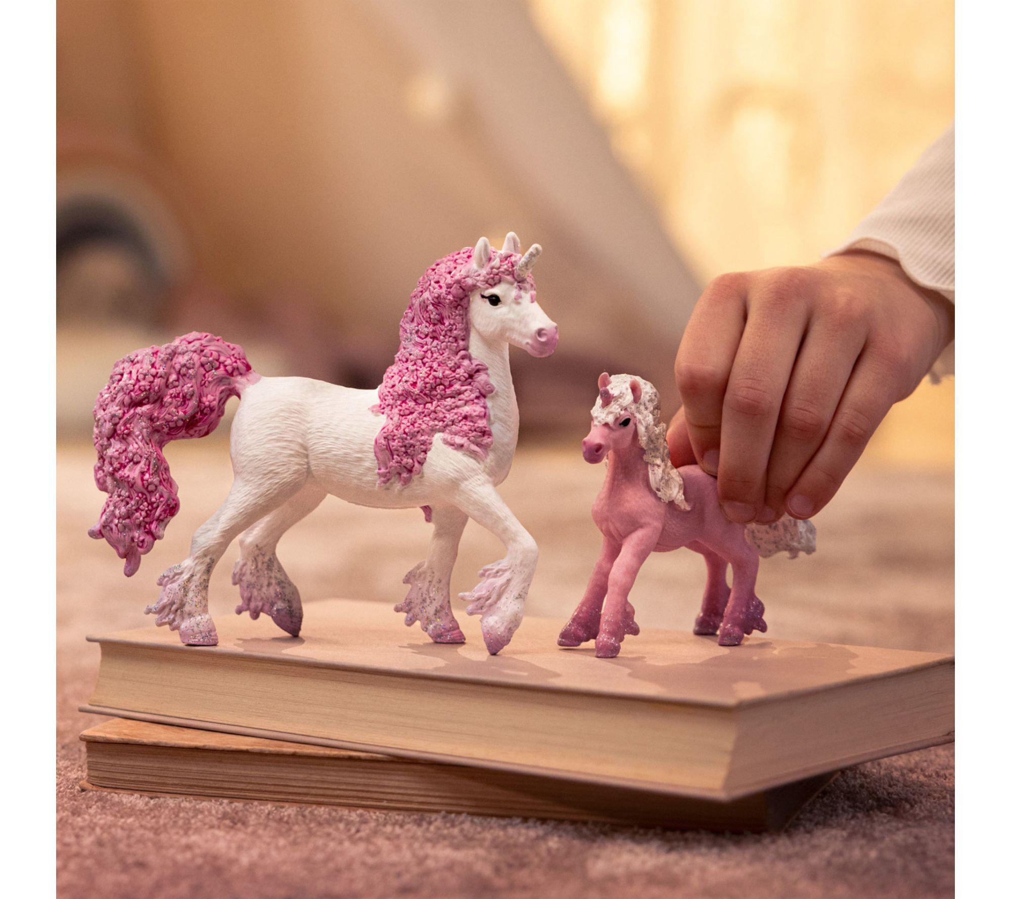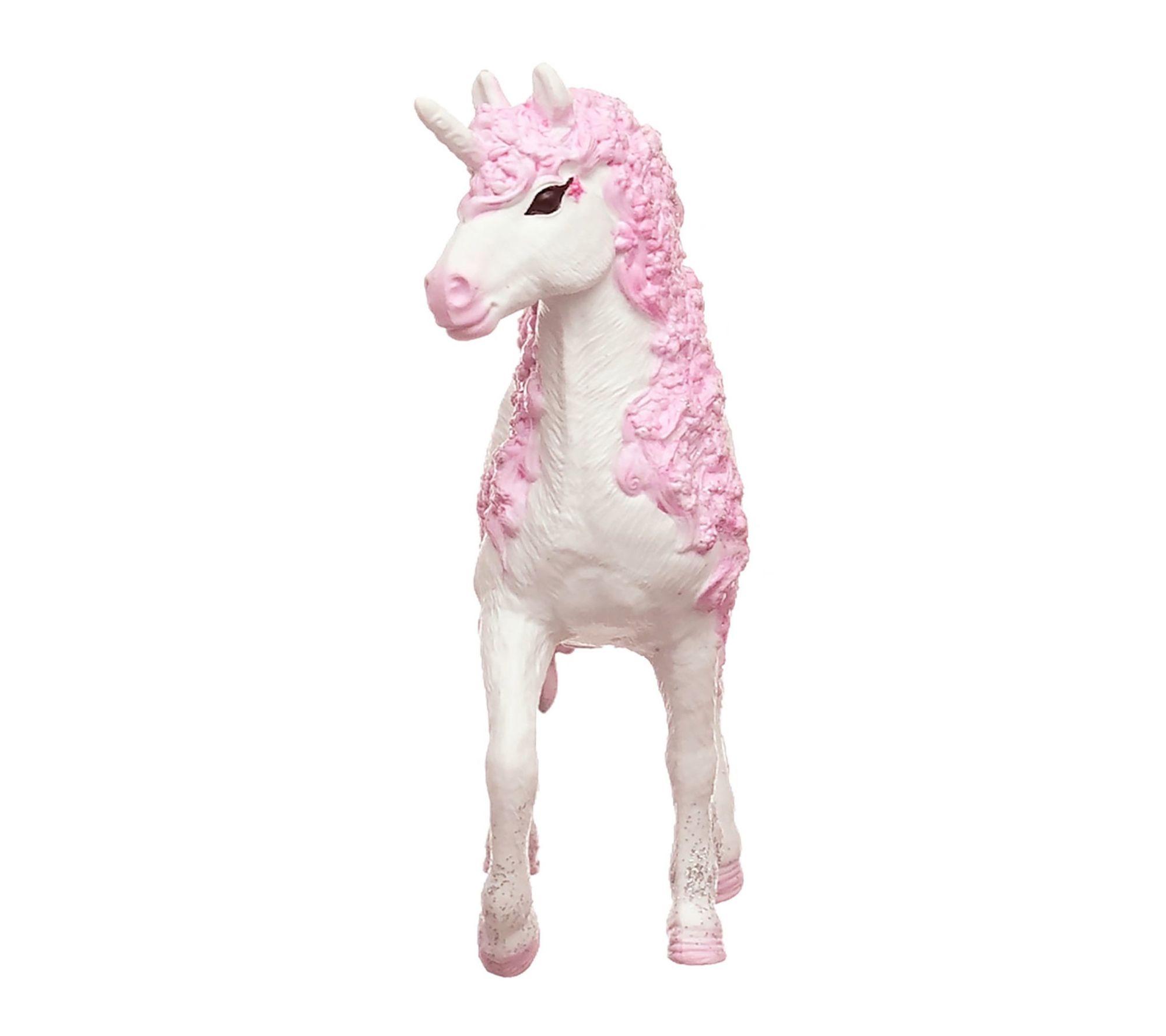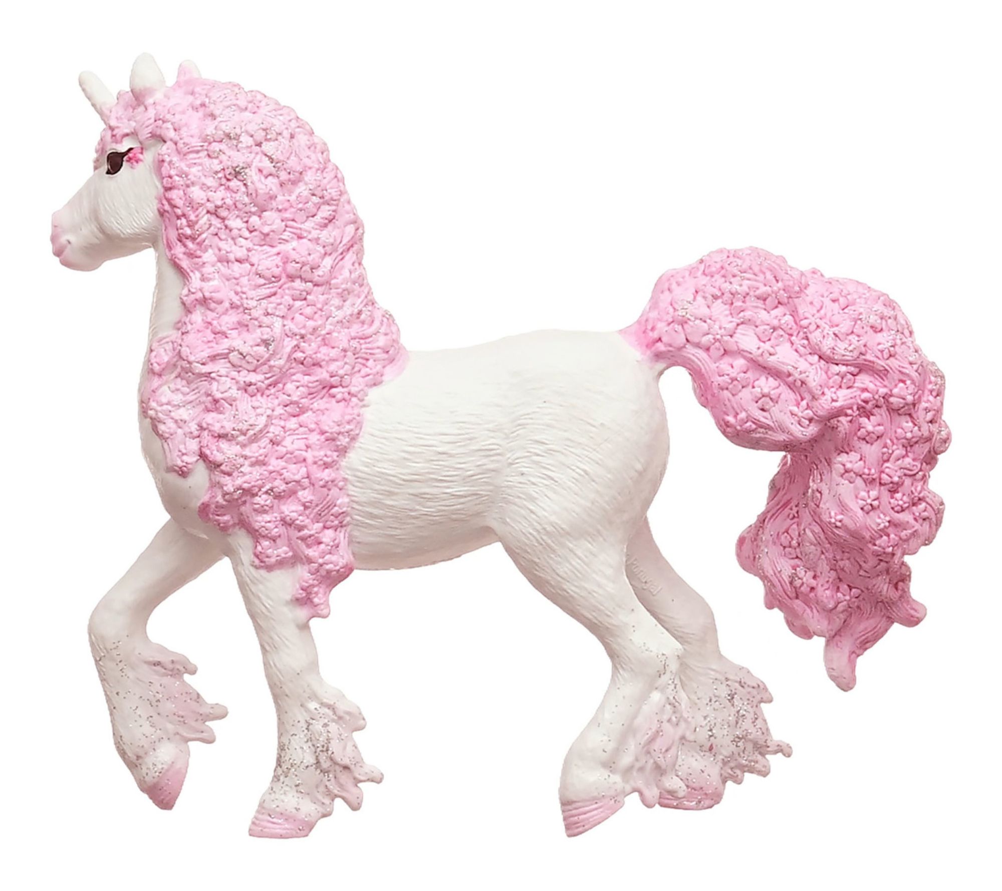 Gallop into magical adventures with this enchanting Flower Unicorn Mare action figure. Inspired by the whimsical meadows of Bayala, its lush mane and tail bloom with delicate pink flowers and its bright white coat shines in the sun, perfect for imaginative storytelling. Make every playtime a memorable journey to a land where wonder always awaits. From Schleich.