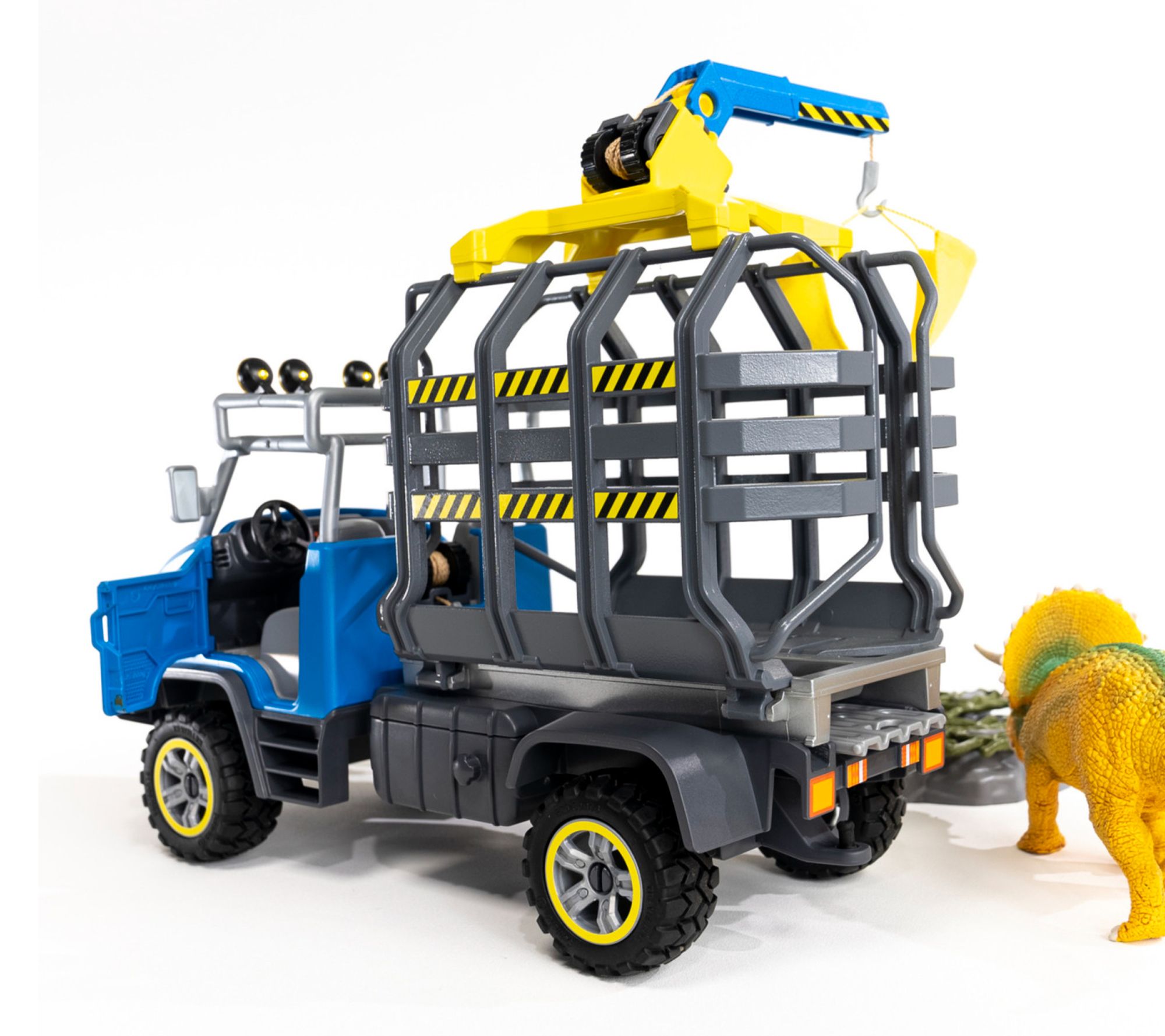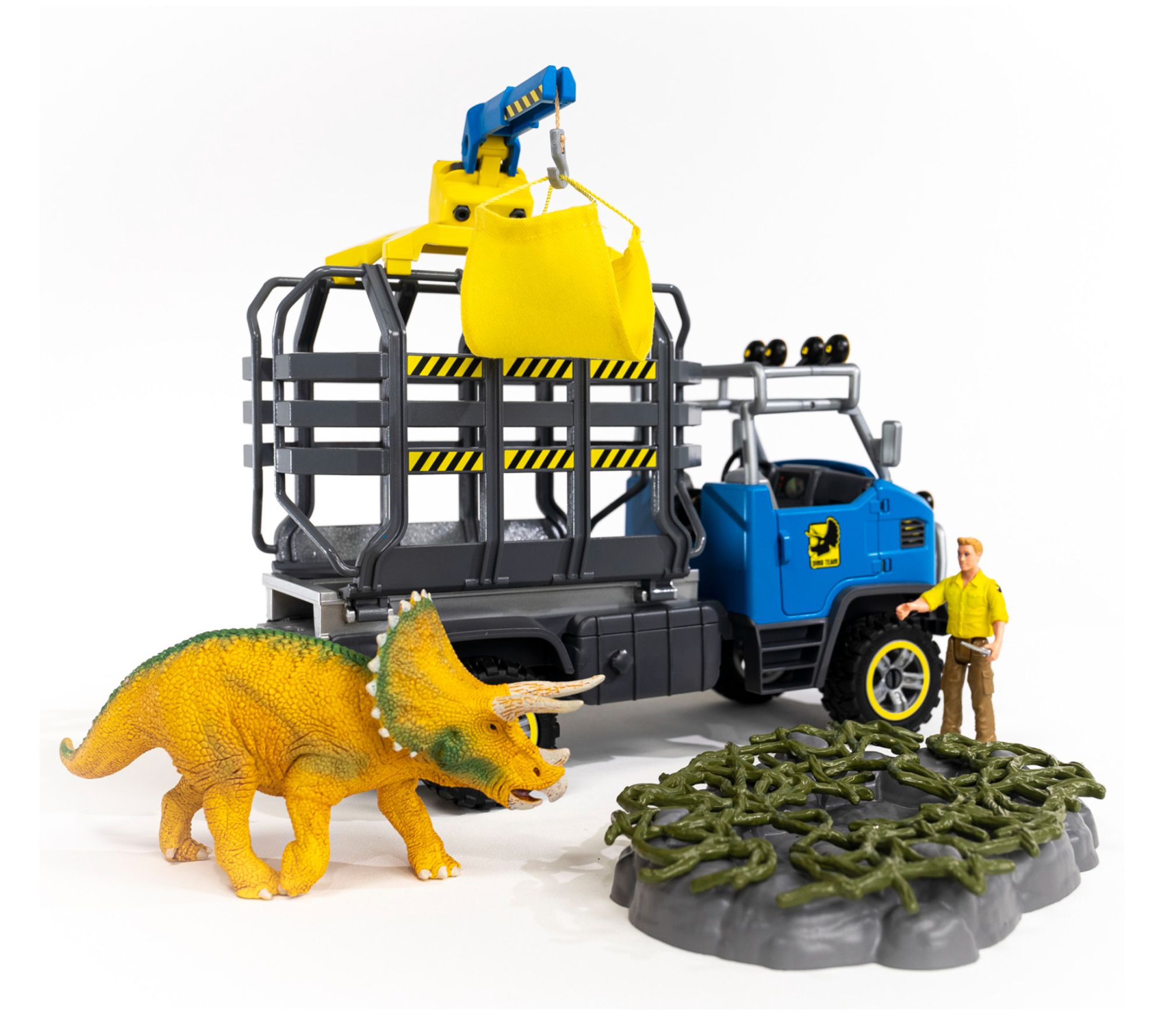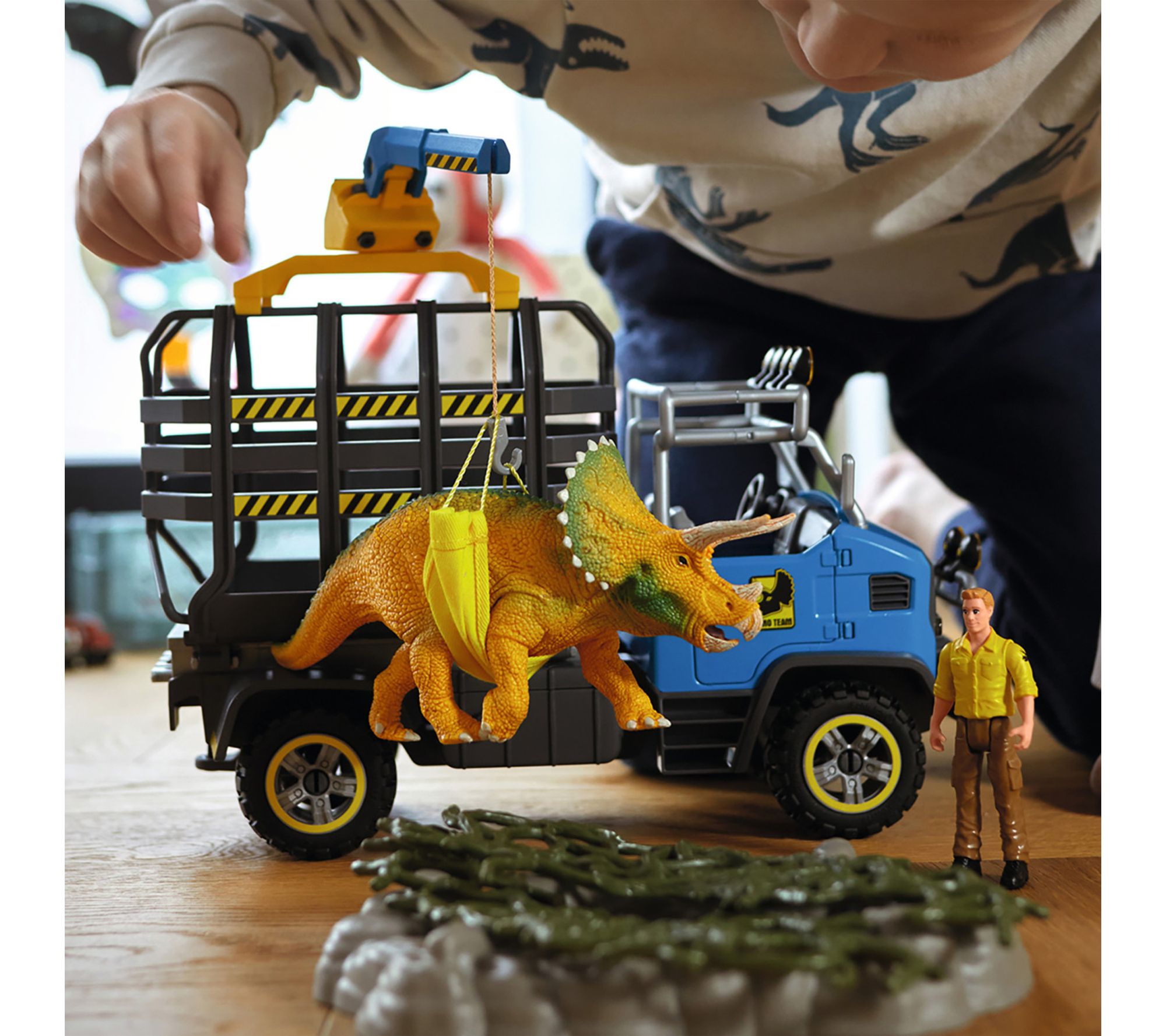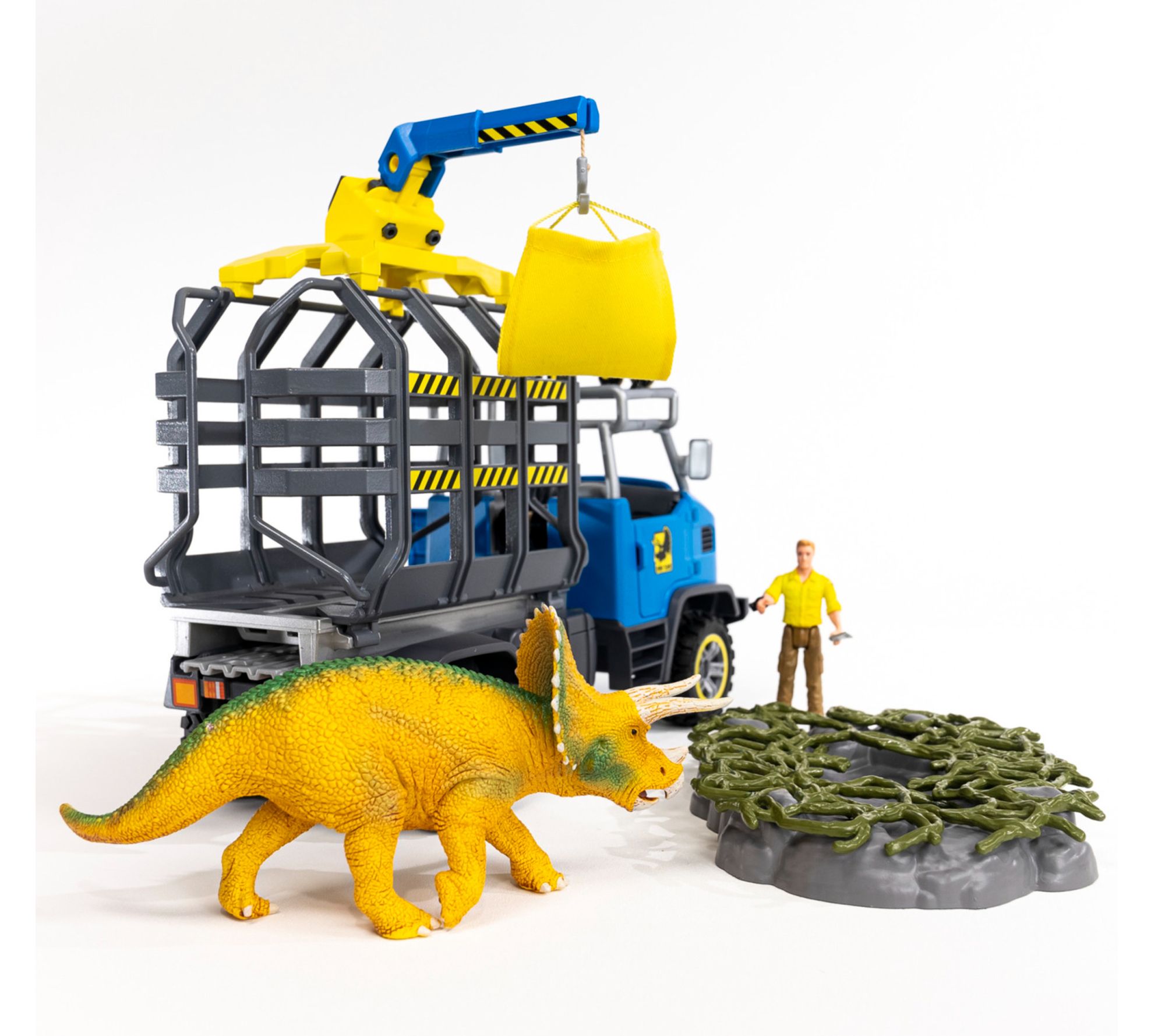 Take the excitement of a dinosaur rescue to new heights with this action-packed playset. Kids can join researcher Luis Colby on a daring mission, using the transport truck and crane to save a stranded triceratops from the jungle swamp. Rich details and interactive features spark endless imaginative adventures. From Schleich.
