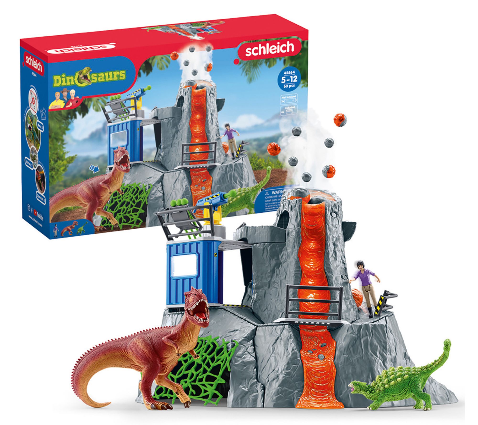 Be transported to the heart of dino territory with this dynamic volcano expedition playset, where every trembling eruption sets the stage for hands-on, imaginative play. LED lighting, real smoke effects, and flying boulders invite your child to lead unforgettable rescue missions and daring research adventures alongside detailed dinosaur figures. From Schleich.