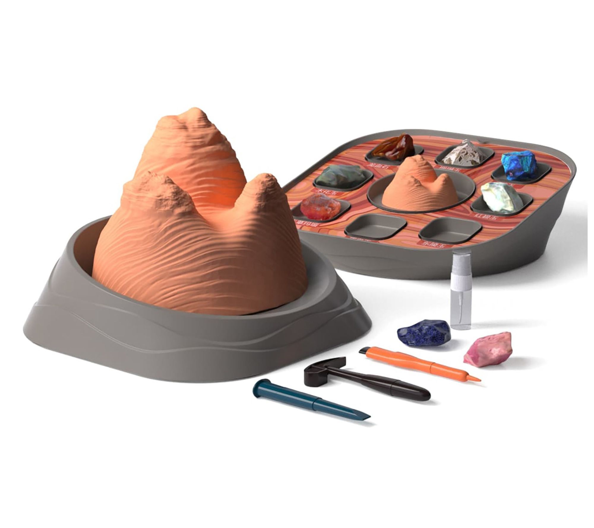 • Includes mining platform, two mining field models, four mining tools, and eight types of stones
