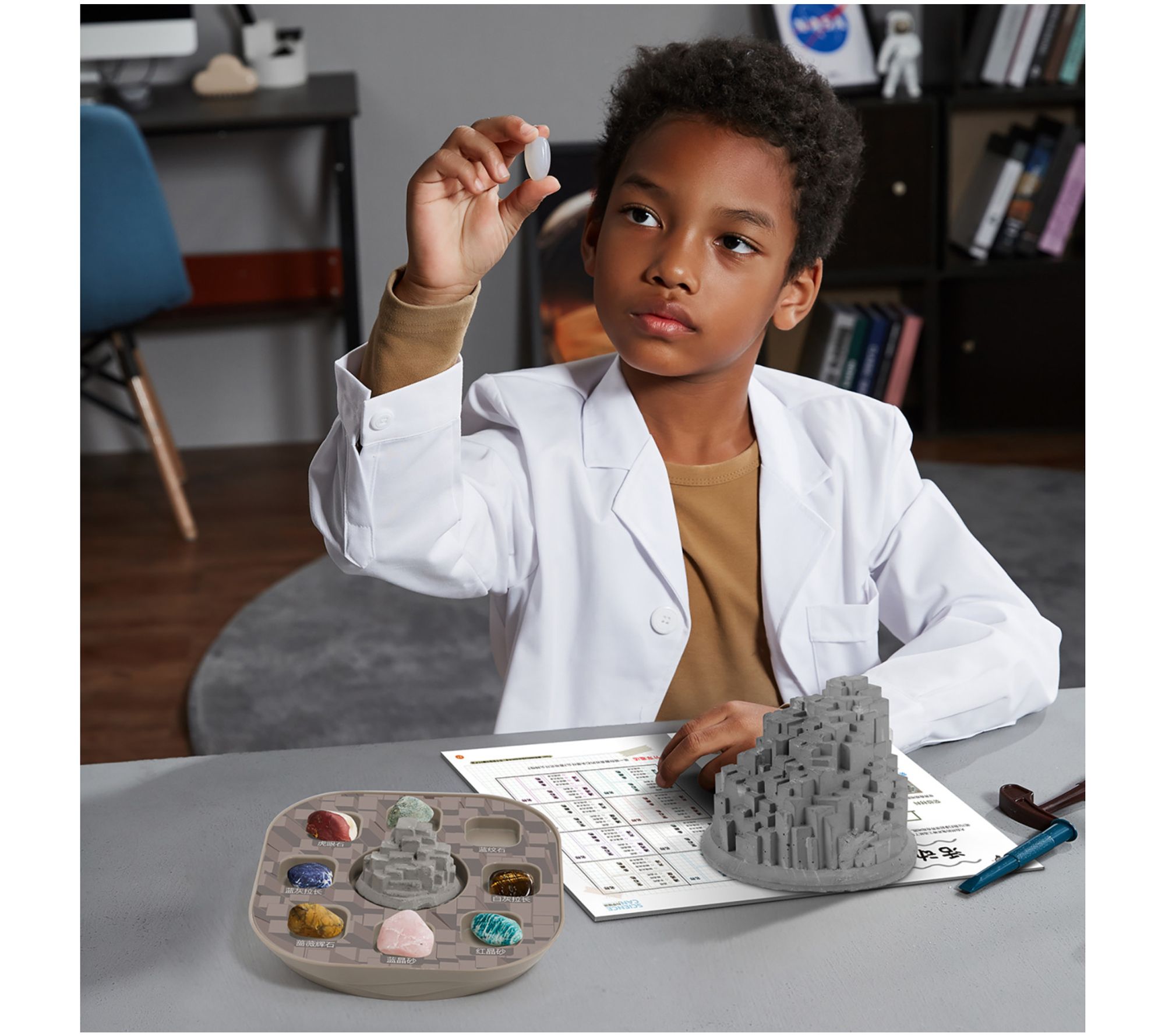 • Includes one mining platform, two mining field models, four mining tools, and eight types of stones