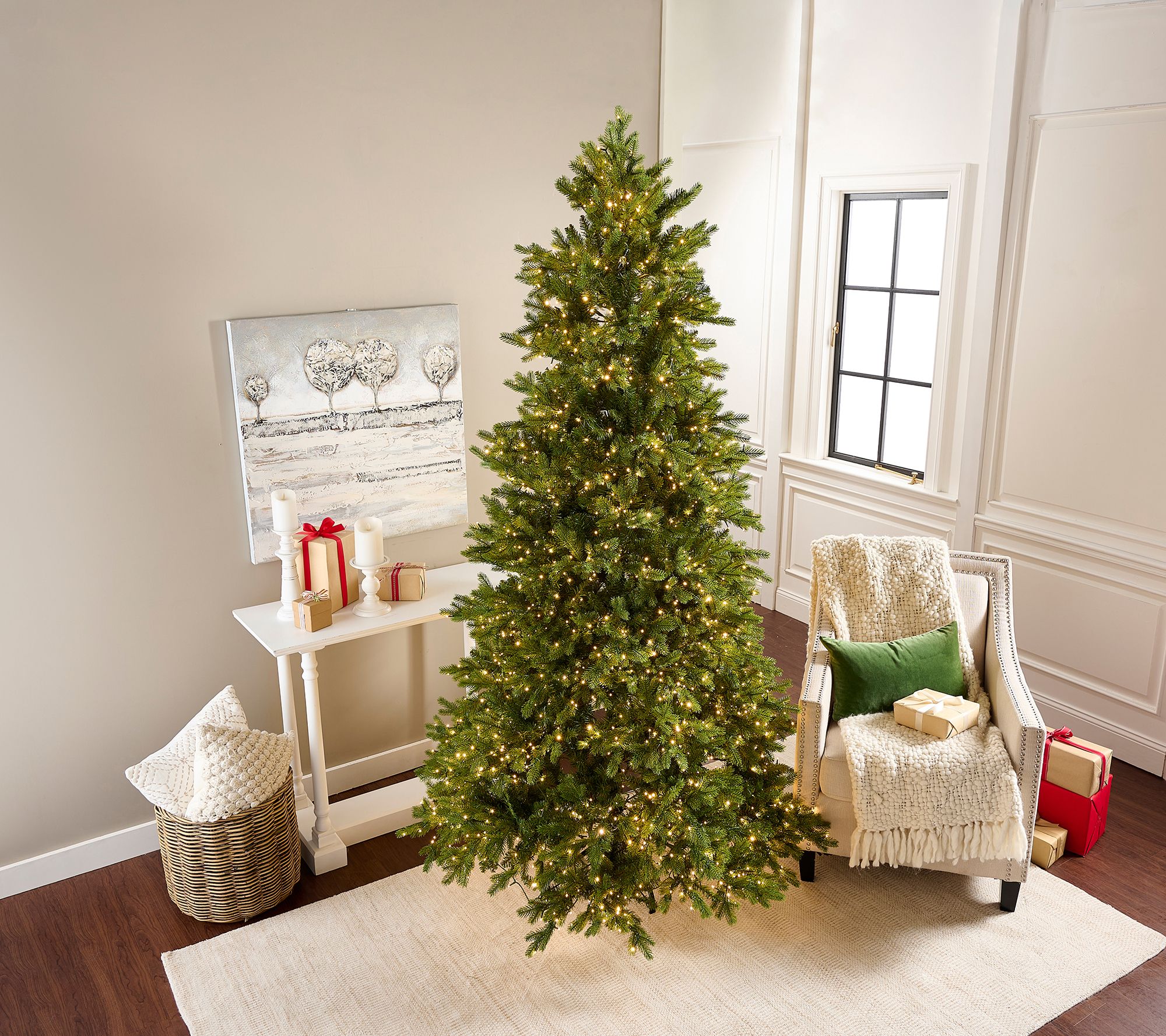 Includes pre-lit artificial tree with remote control and stand