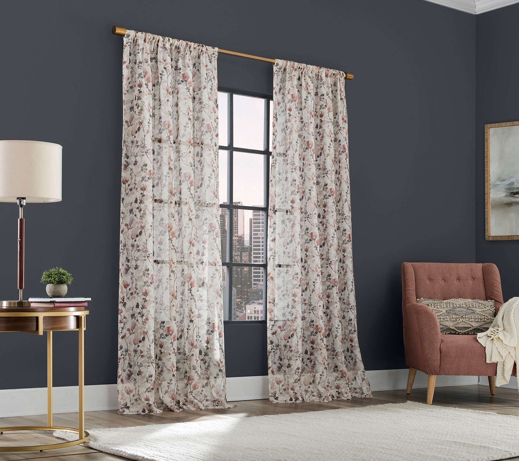 Scott Living Jessa Floral Print Sheer Curtain Panel 52"x96"