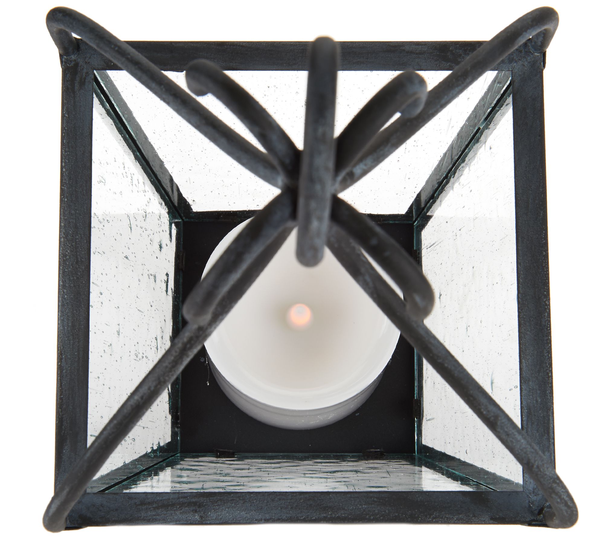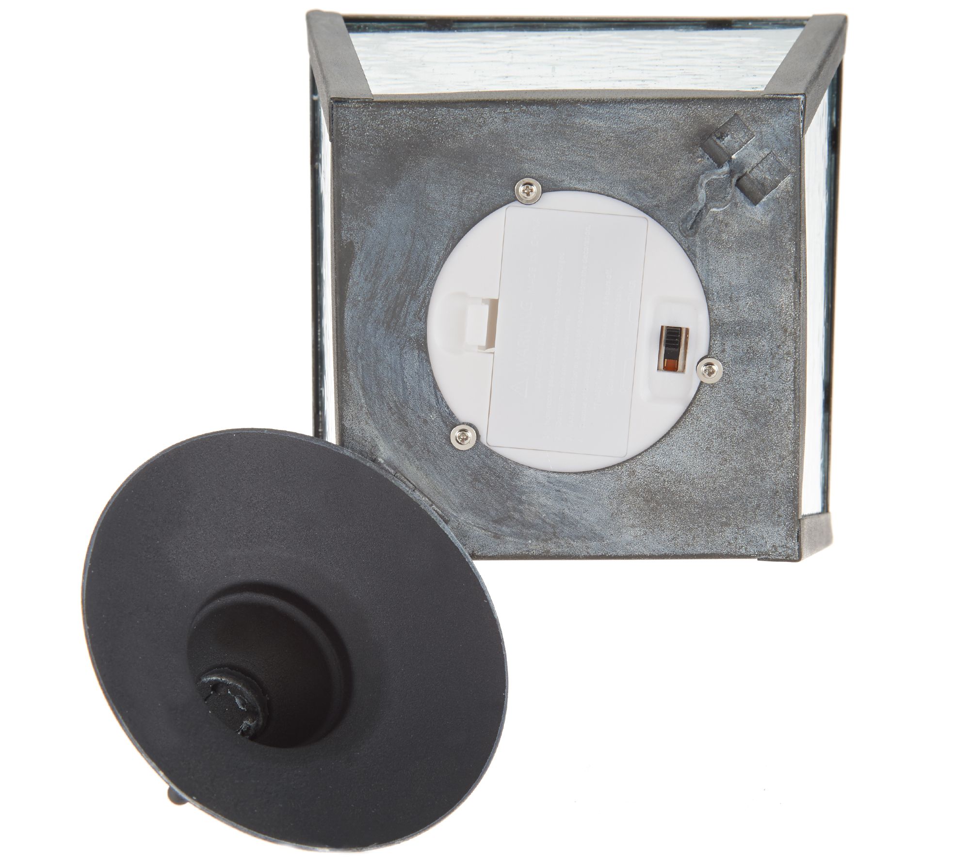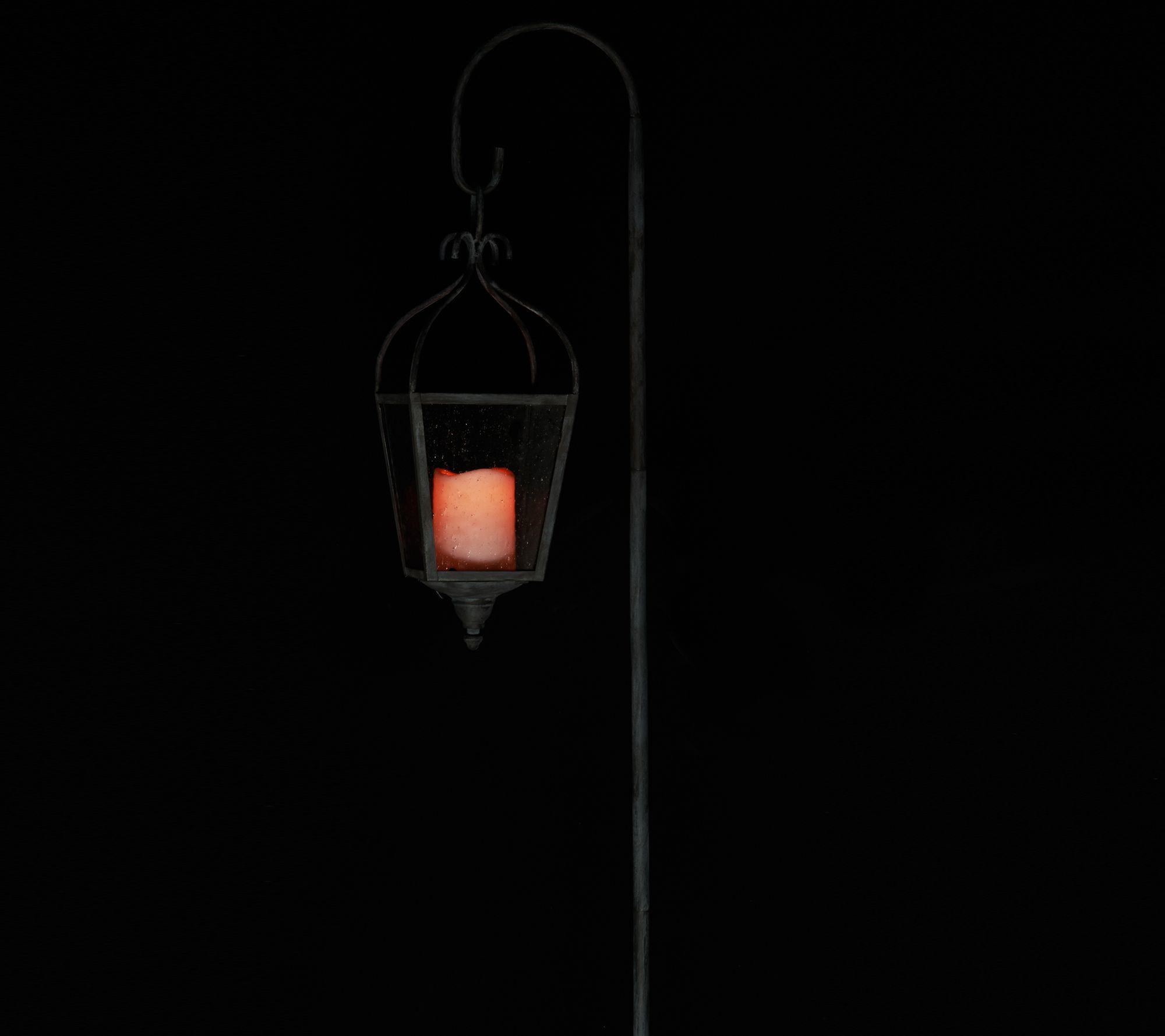 Includes seeded glass carriage light, flameless LED candle, and shepherd's hook