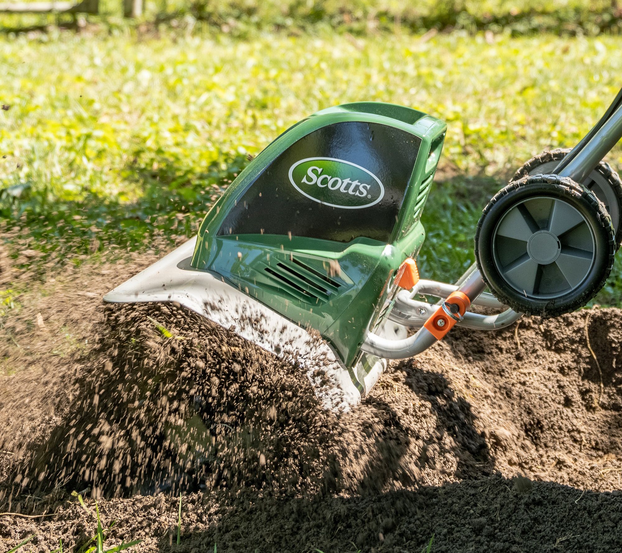 Break new ground with this powerful electric tiller offering adjustable cutting and a convenient push-button start. From Scotts Outdoor Power Tools.