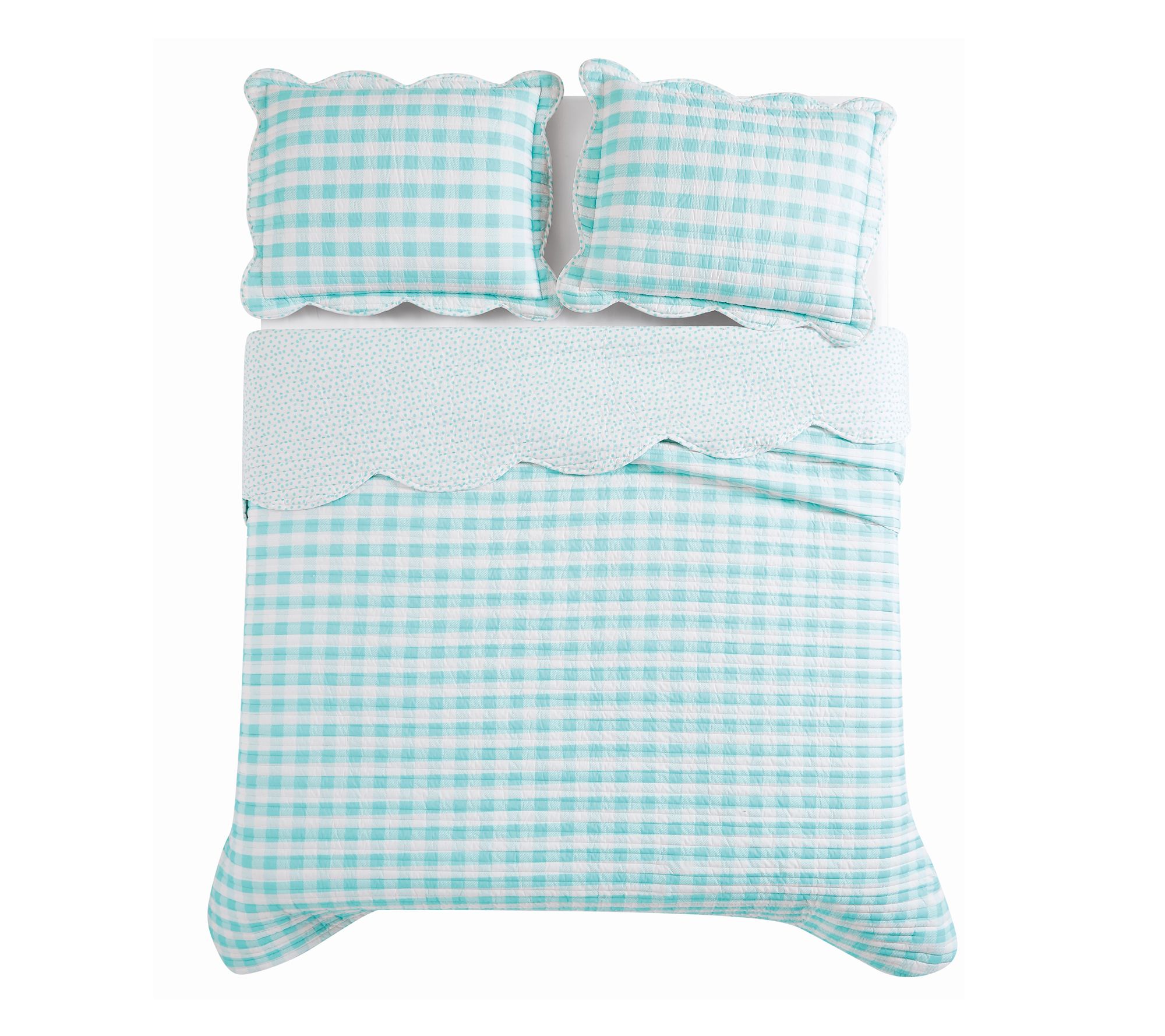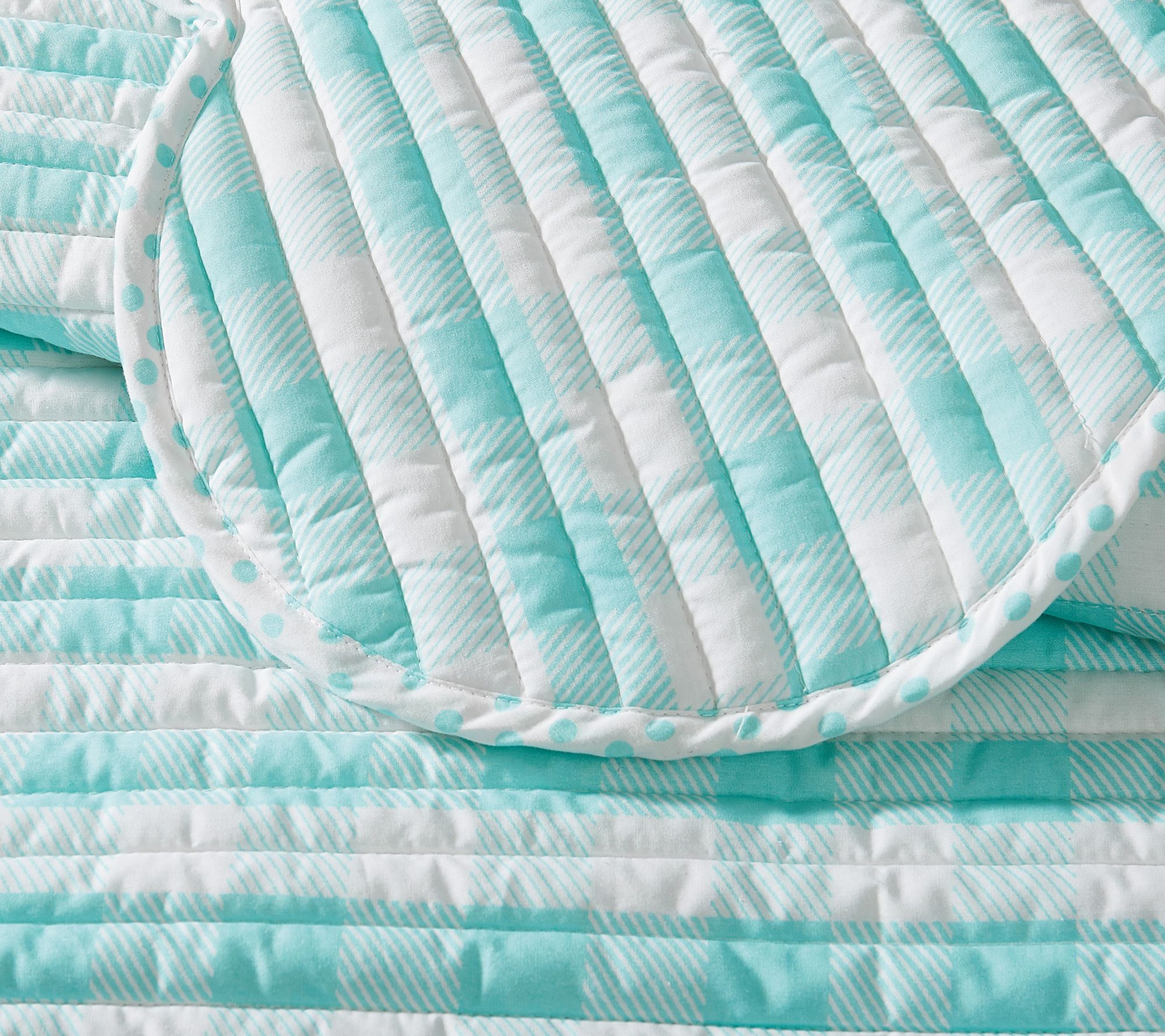 A bold grid pattern in bright turquoise and crisp white brings playful energy to your bedroom, breathing new life into the classic gingham style. The SCOUT Barnaby Checkham Quilt Set is lightweight and cool to the touch, making it easy to layer for comfort in any season. A reversible design and machine washable construction mean carefree maintenance and lasting style. From SCOUT.