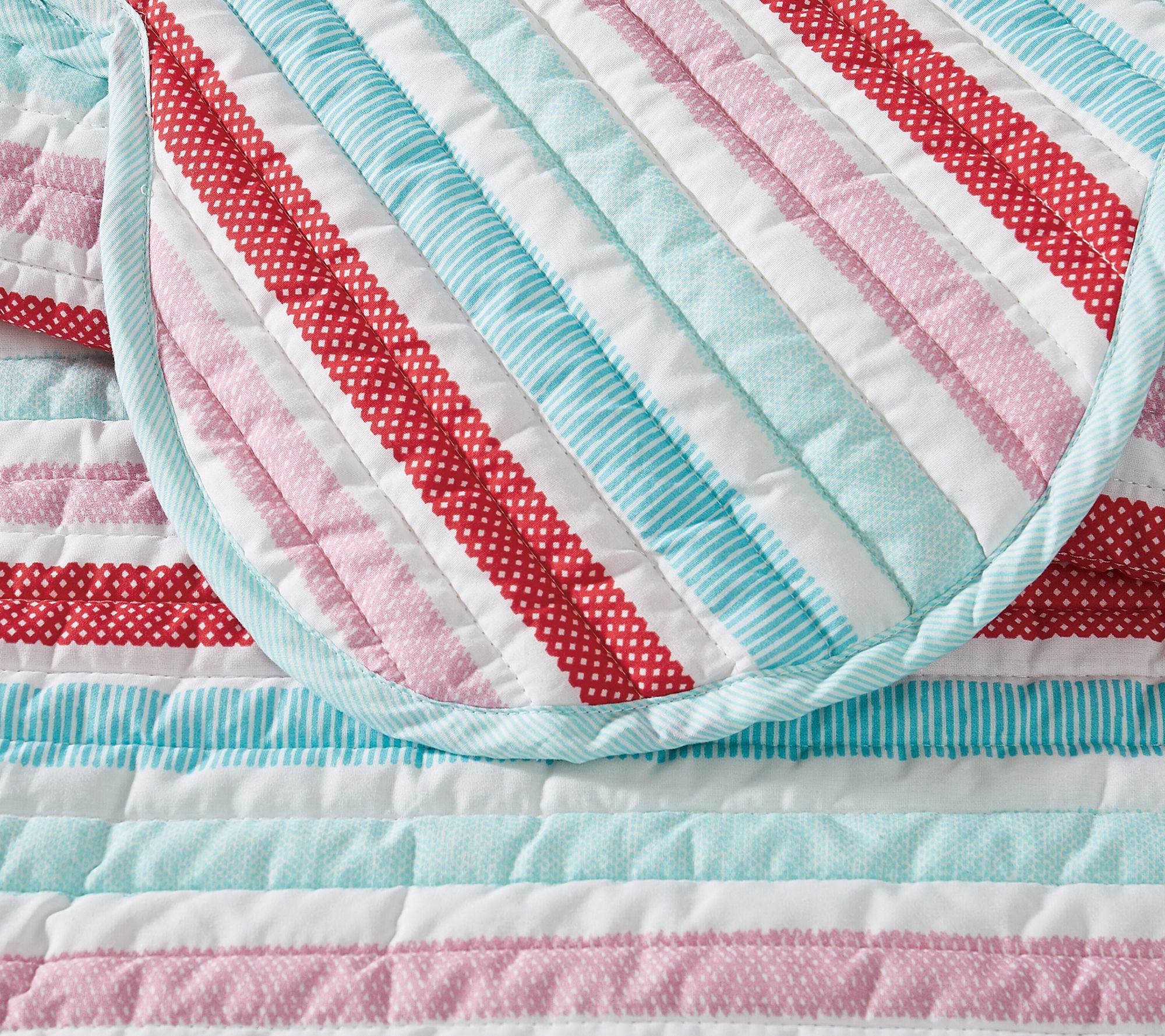 Brighten up late-night study sessions or add a touch of fun to your guest room with this twin XL quilt set, featuring bold stripes in playful popsicle-inspired colors. The smooth cotton shell and light polyester fill layer together for cozy comfort through every season, while the easy-care design means more time enjoying your space and less time on laundry. From SCOUT.