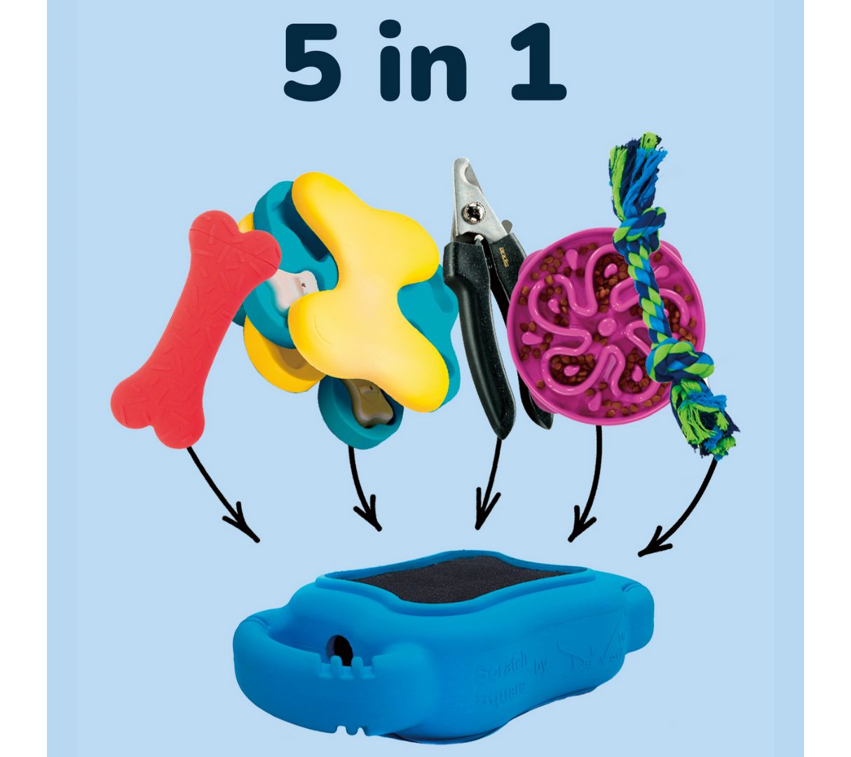Keeping up with grooming can be... ruff. The Scratch Square S/M pet grooming and enrichment toy by De'Vora allows dogs to trim and file their own nails while playing and searching for food, combining fur baby fun and nail health all in one. From De'Vora.