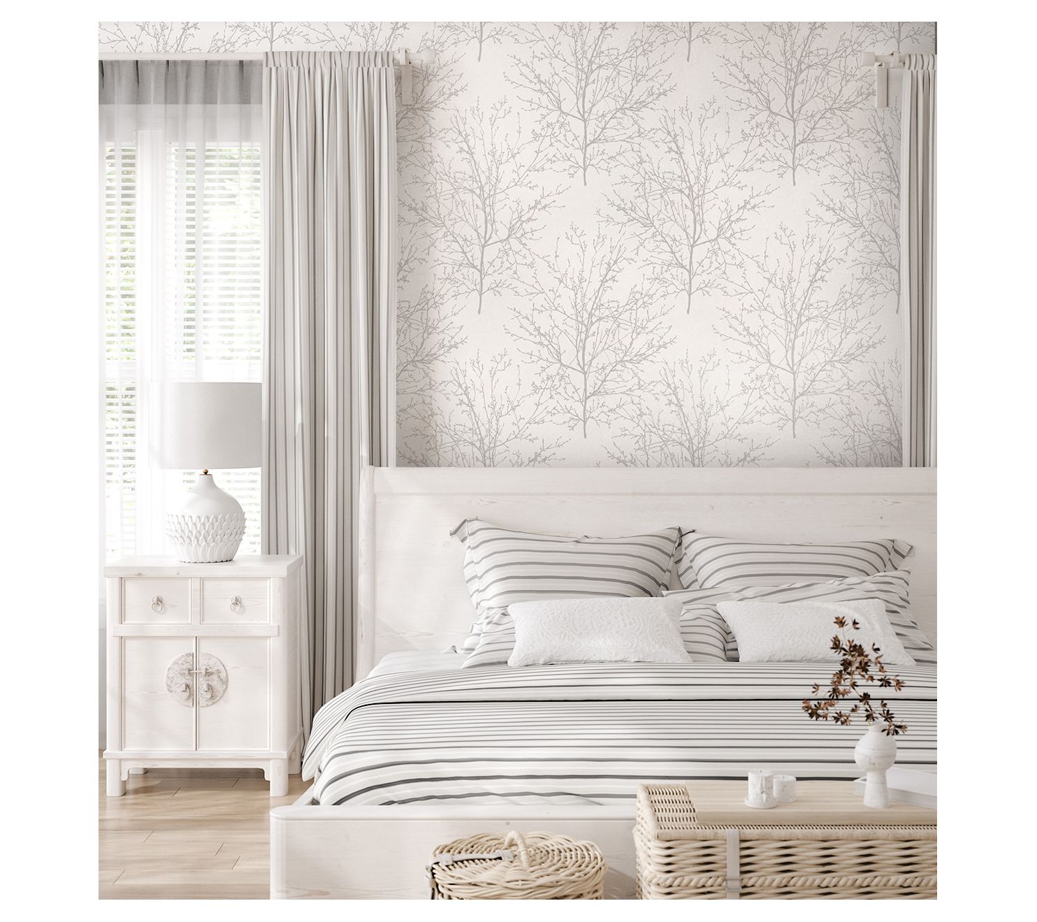 Luxurious in its simplicity, this Winter Branches wallpaper pattern transforms any wall in your home. Screen printed on a high-quality nonwoven paper, it adds a sophisticated flourish to any interior space. From Seabrook Designs.