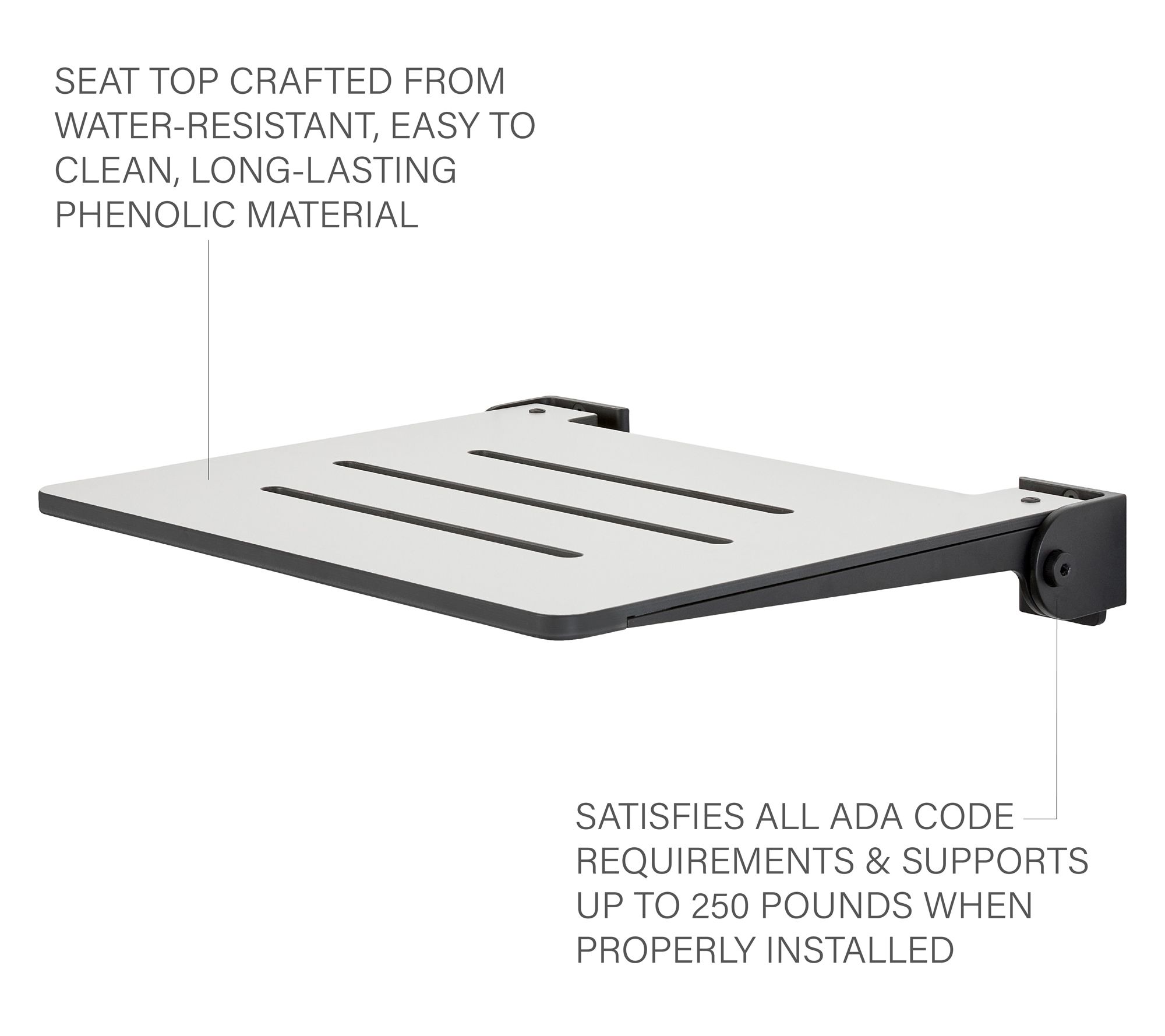 Showering should feel relaxing and safe, no matter your mobility needs. With a classic design that folds neatly away, this seat gives you sturdy support just where you need it -- then easily tucks aside so your space stays open and clutter-free for others. The water-draining seat keeps things comfortable and simple to clean. From Seachrome.