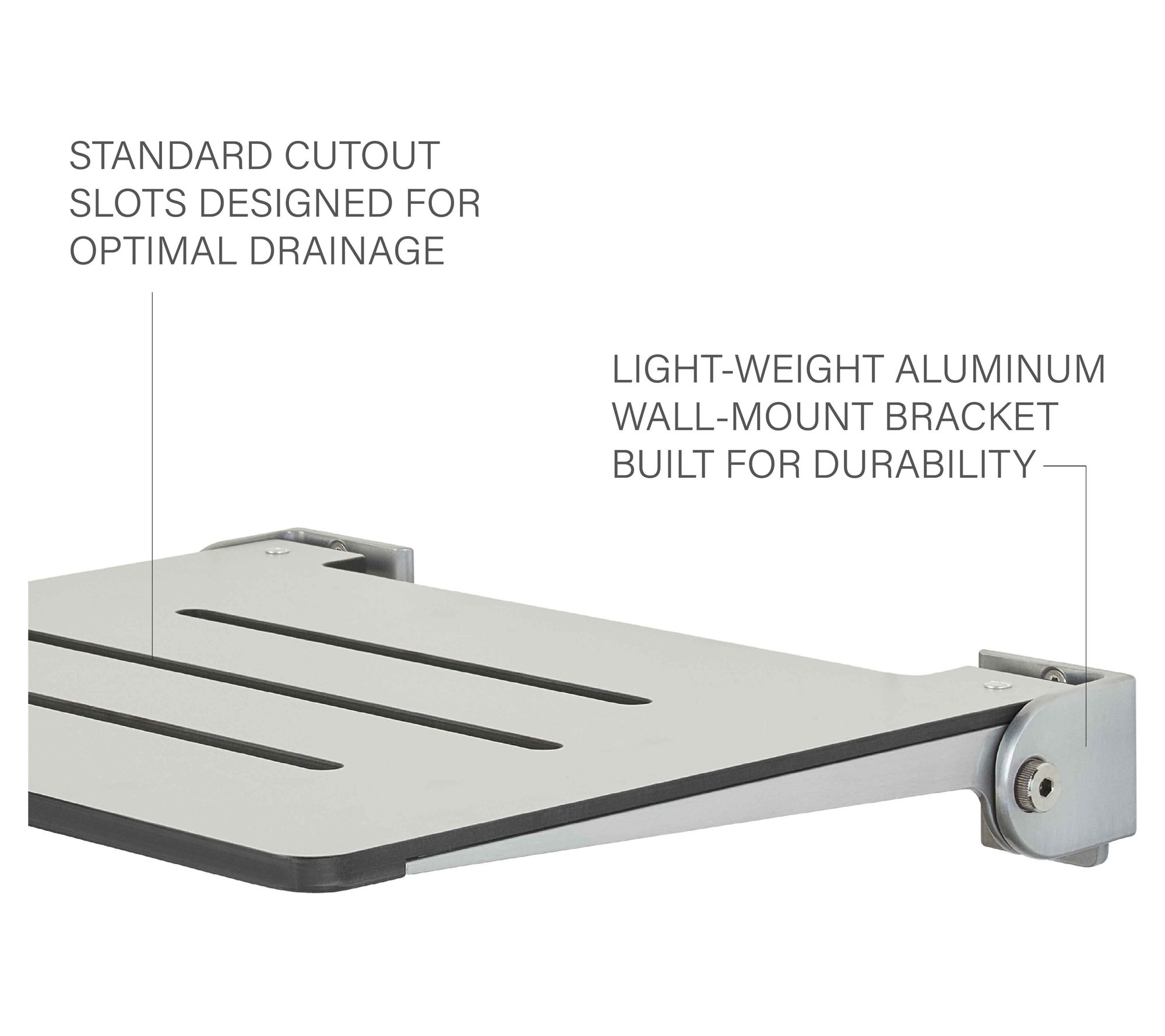 Seachrome 18" Folding Wall Mount Shower Bench Seat, Light Gray