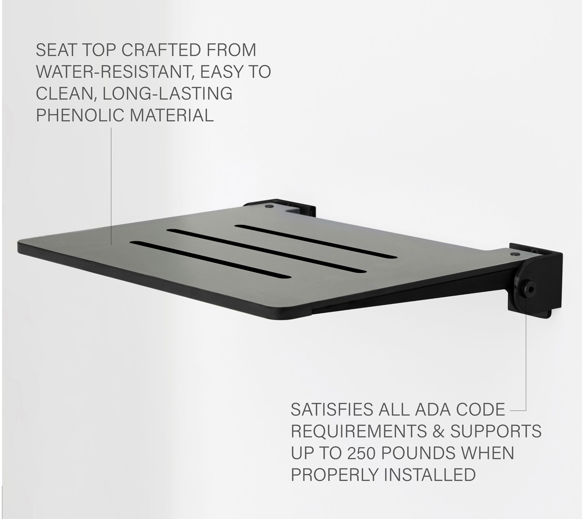 Seachrome 18" SlimLine Folding Wall Mount Shower Bench, Gray
