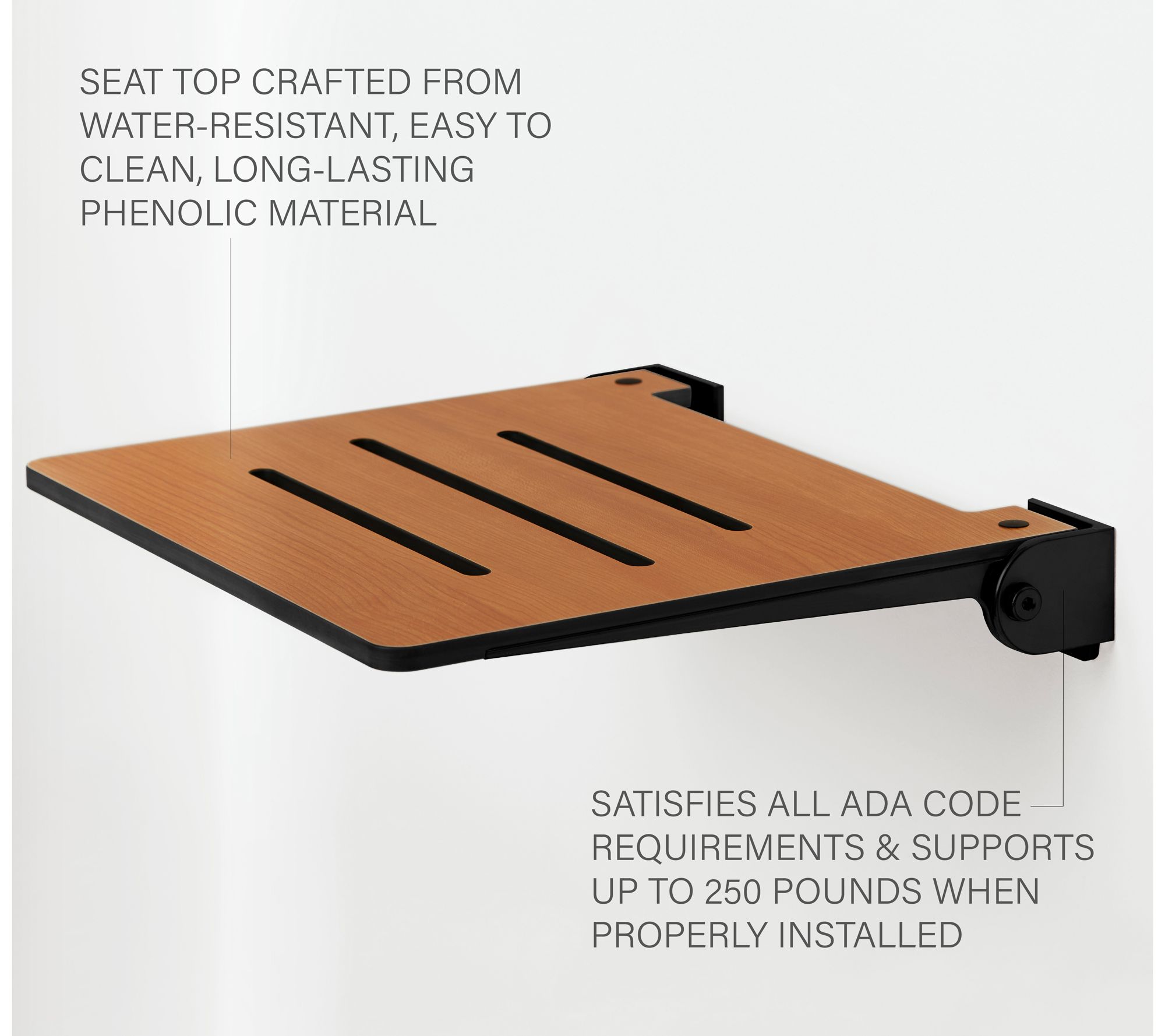 Seachrome 18" SlimLine Folding Wall Mount Shower Bench, Teak