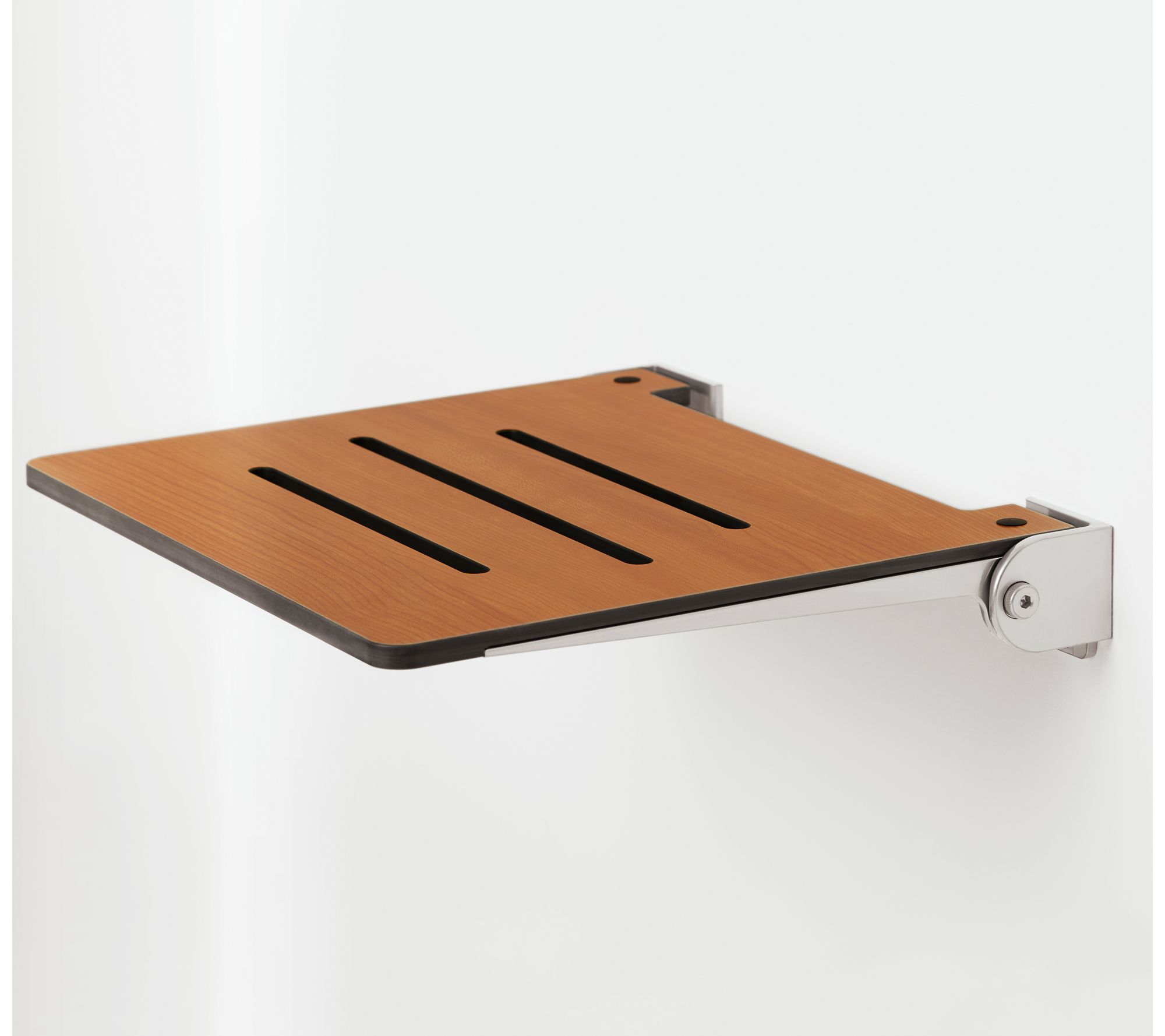 Designed for comfort and confidence during daily routines, this foldable shower bench provides a supportive spot to sit while bathing or grooming. The natural teak surface brings warmth and style to any bathroom, and its wall-mount design makes it easy to tuck away when not in use. From Seachrome.