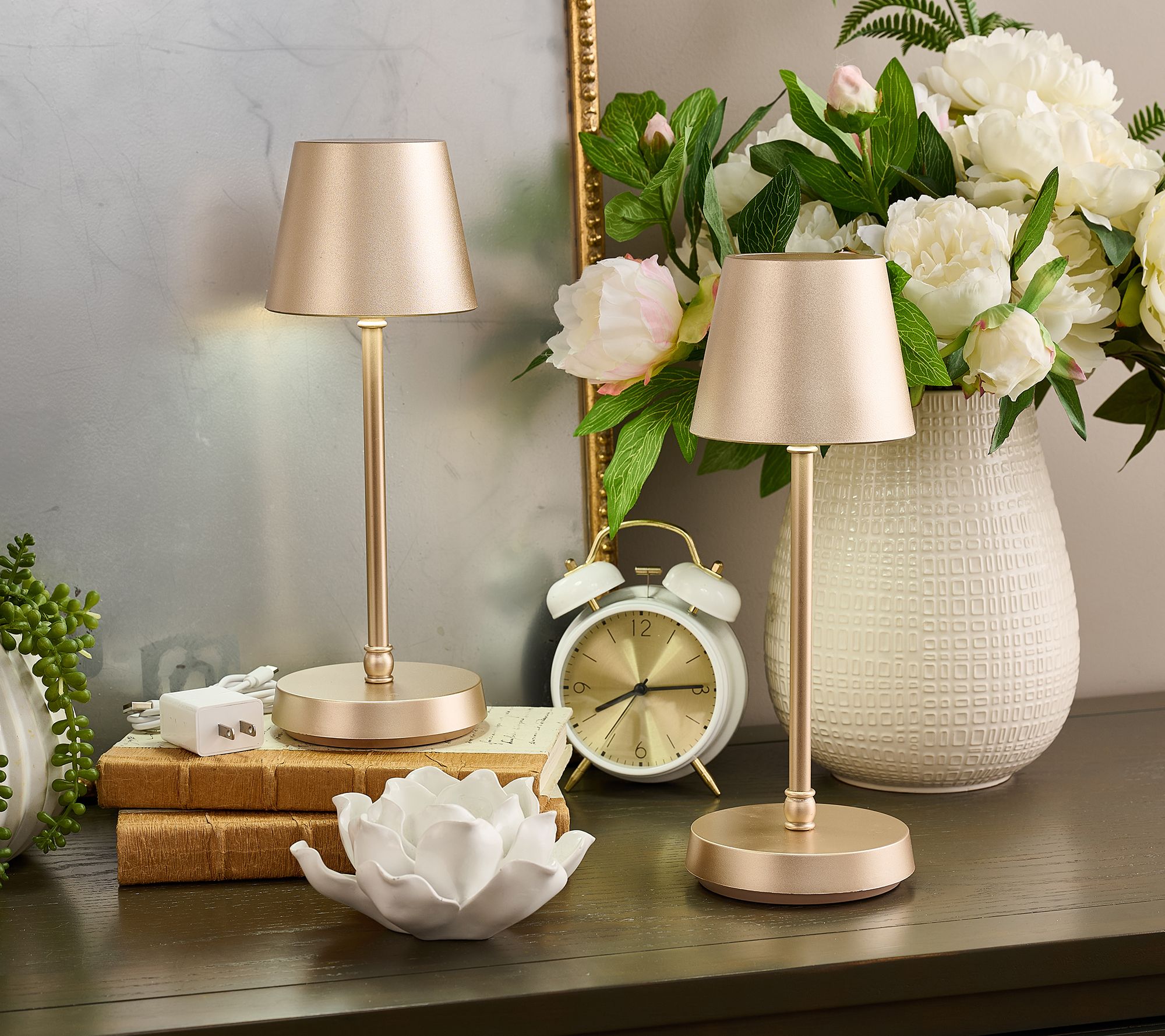 Is the lack of an outlet keeping you in the dark? Let there be light wherever you need it -- indoors and out -- with this set of two rechargeable LED touch lamps. Simply tap the base to turn on the cordless convenience, then tap again to switch up the light modes -- warm, neutral, or cool -- to suit your space or vibe. Cool is ideal for task lighting at your crafting table, warm for an ambient dinner party atmosphere, and neutral for everyday entryway use. Need bright light beside your reading chair but gentler illumination for late-night check-ins on baby or a companion? Simply touch and hold the sensor to dim or increase brightness to your desired level.