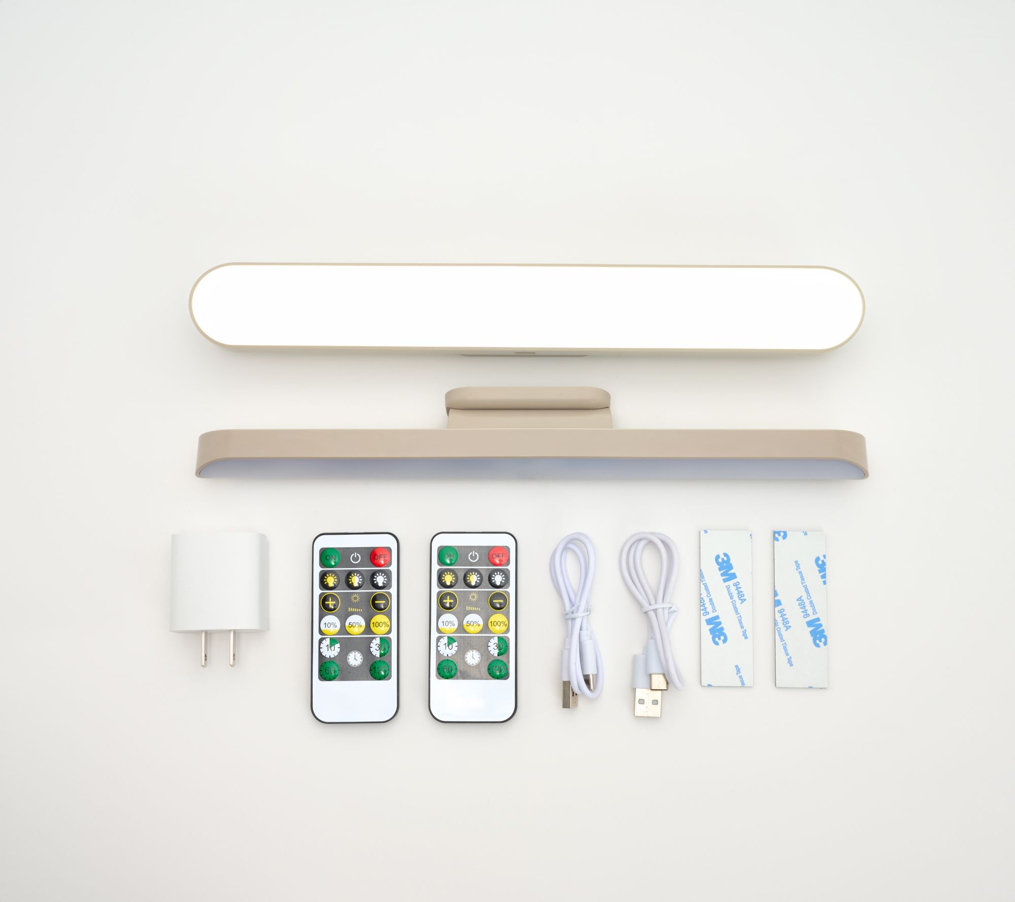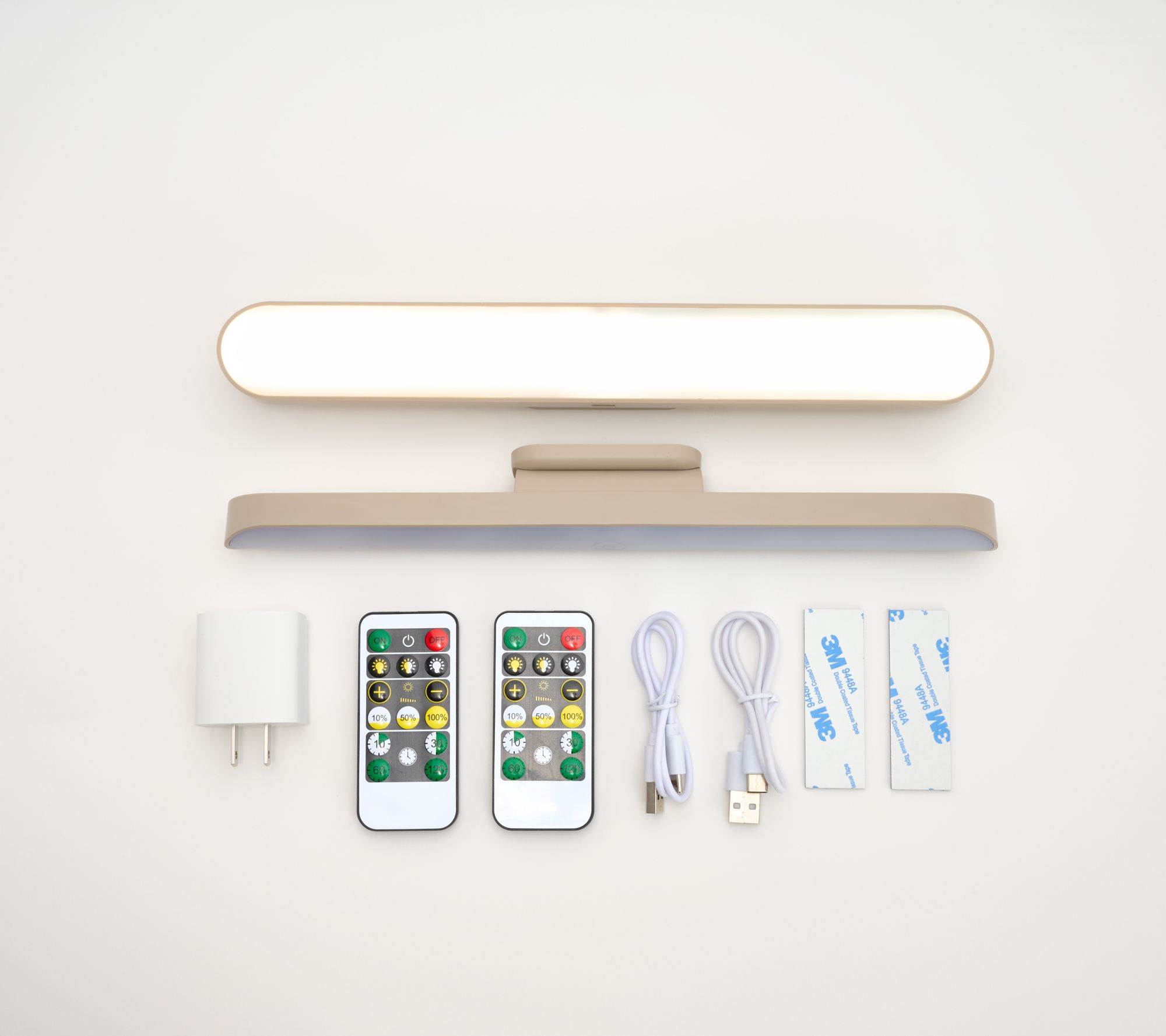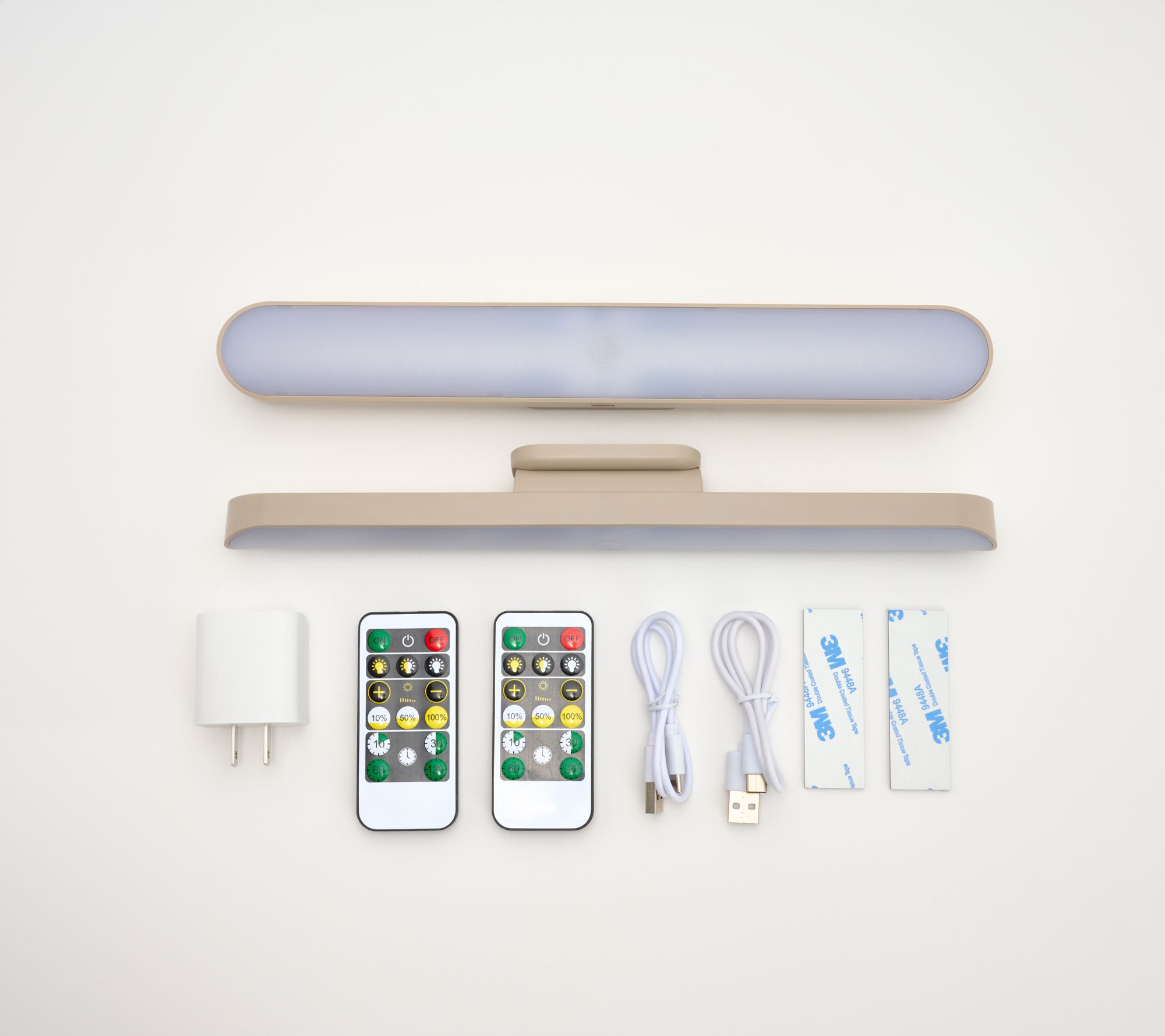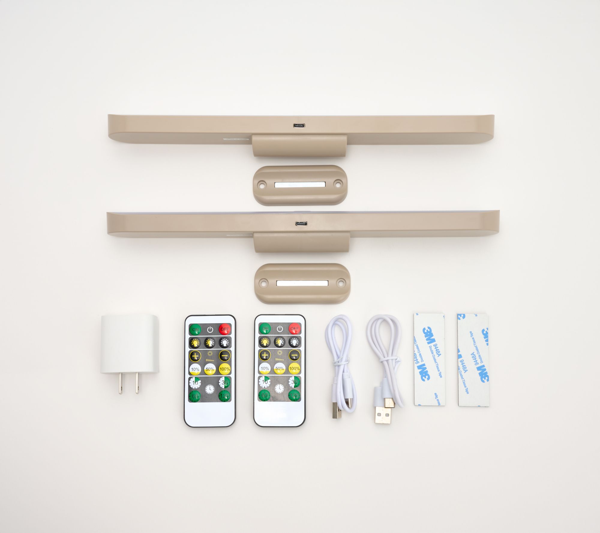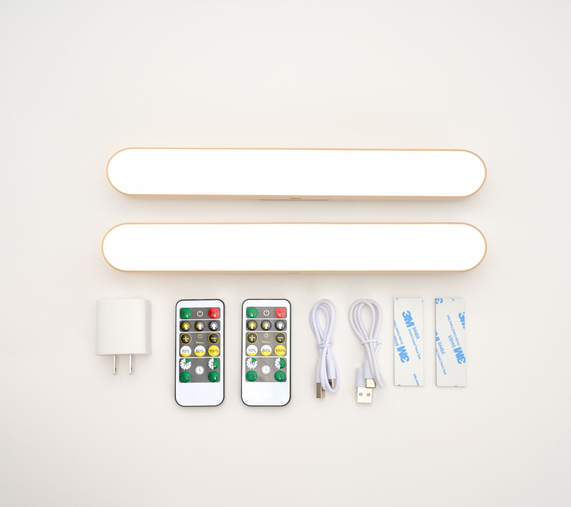 Includes two rechargeable swivel LED lights, two remotes, two USB cords, and one charging block