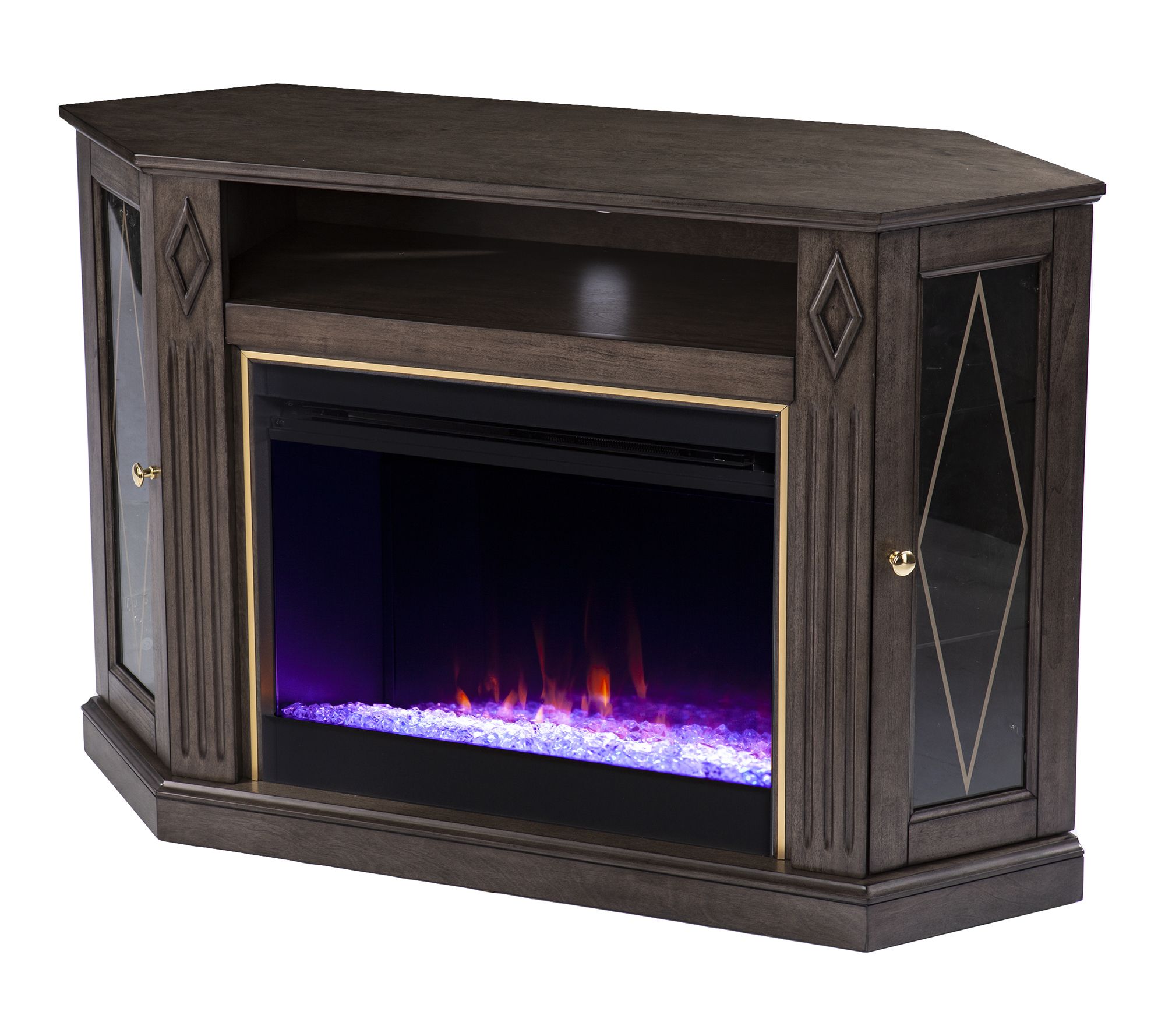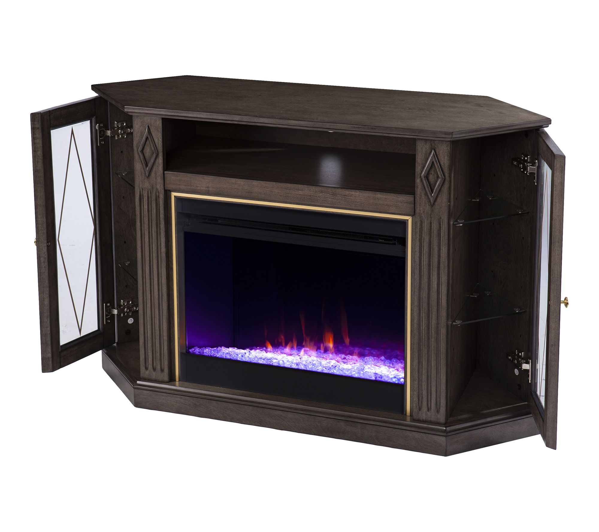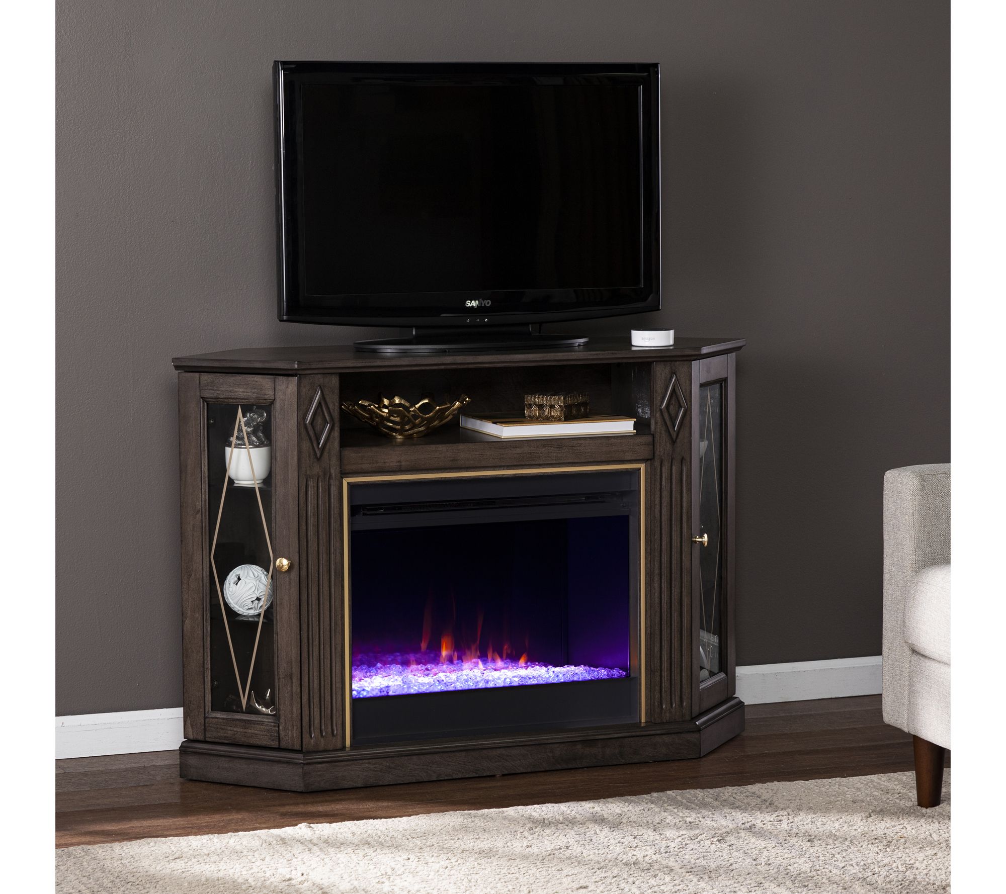 Cozy evenings feel brighter with the Austindale color changing fireplace. Multi-color flames shimmer off glittering crystal fill, while adjustable shelves keep remotes and media essentials organized. Effortlessly warm up your den or game room and create a focal point for your TV or gatherings with a statement piece designed for year-round enjoyment. From SEI.