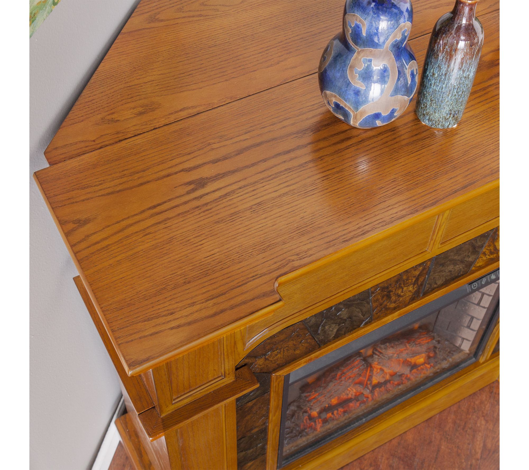 Enhance evenings with the warmth and charm of the Cartwright Convertible Electric Fireplace. Whether centered against a wall or tucked into a corner, its mission oak style and lifelike multi-color flames create a welcoming atmosphere for gatherings, movies, or relaxing nights in. Adjust the temperature and ambiance with the remote control for year-round enjoyment. From SEI.