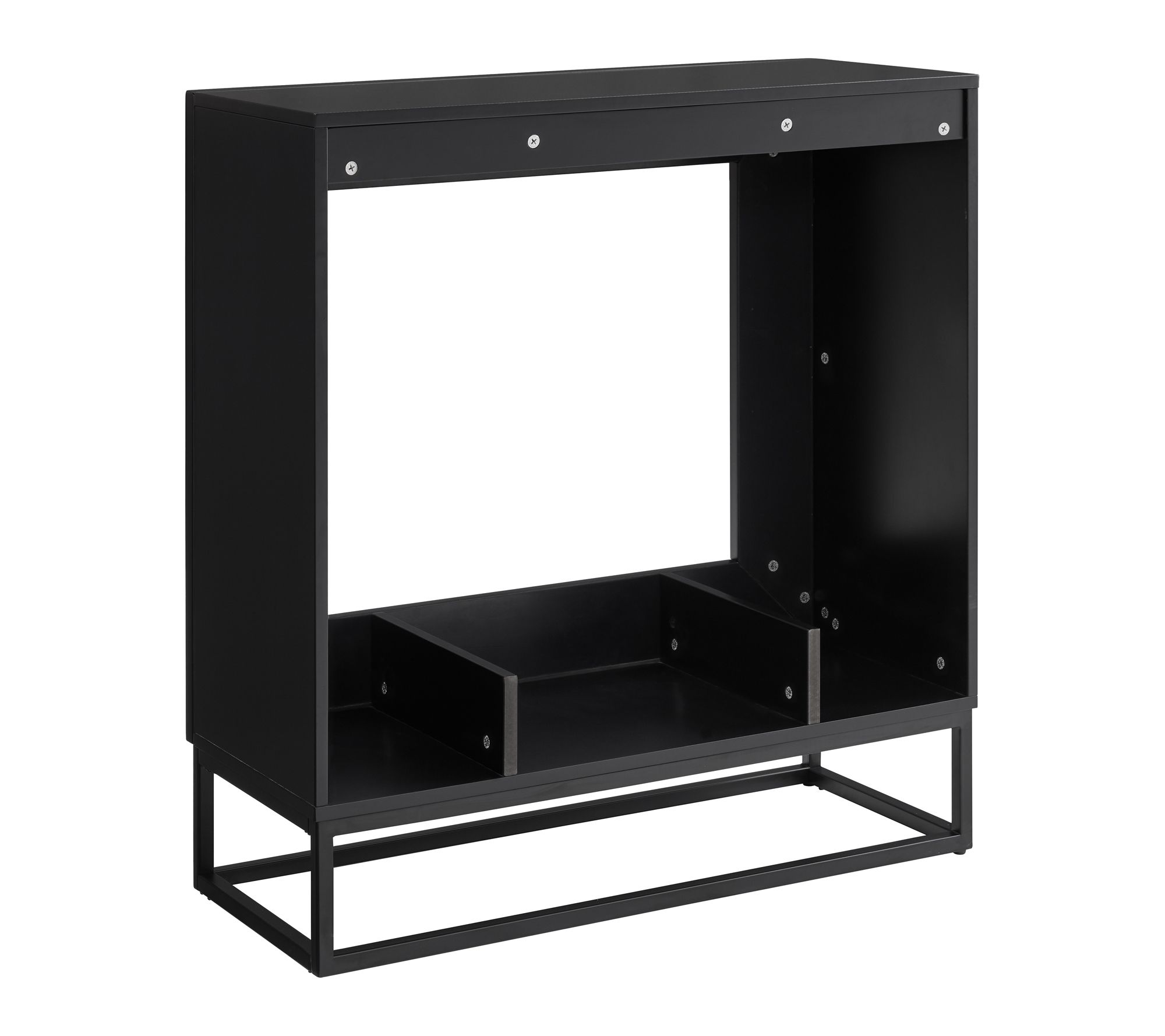• Freestanding design with painted finish and sleek black styling