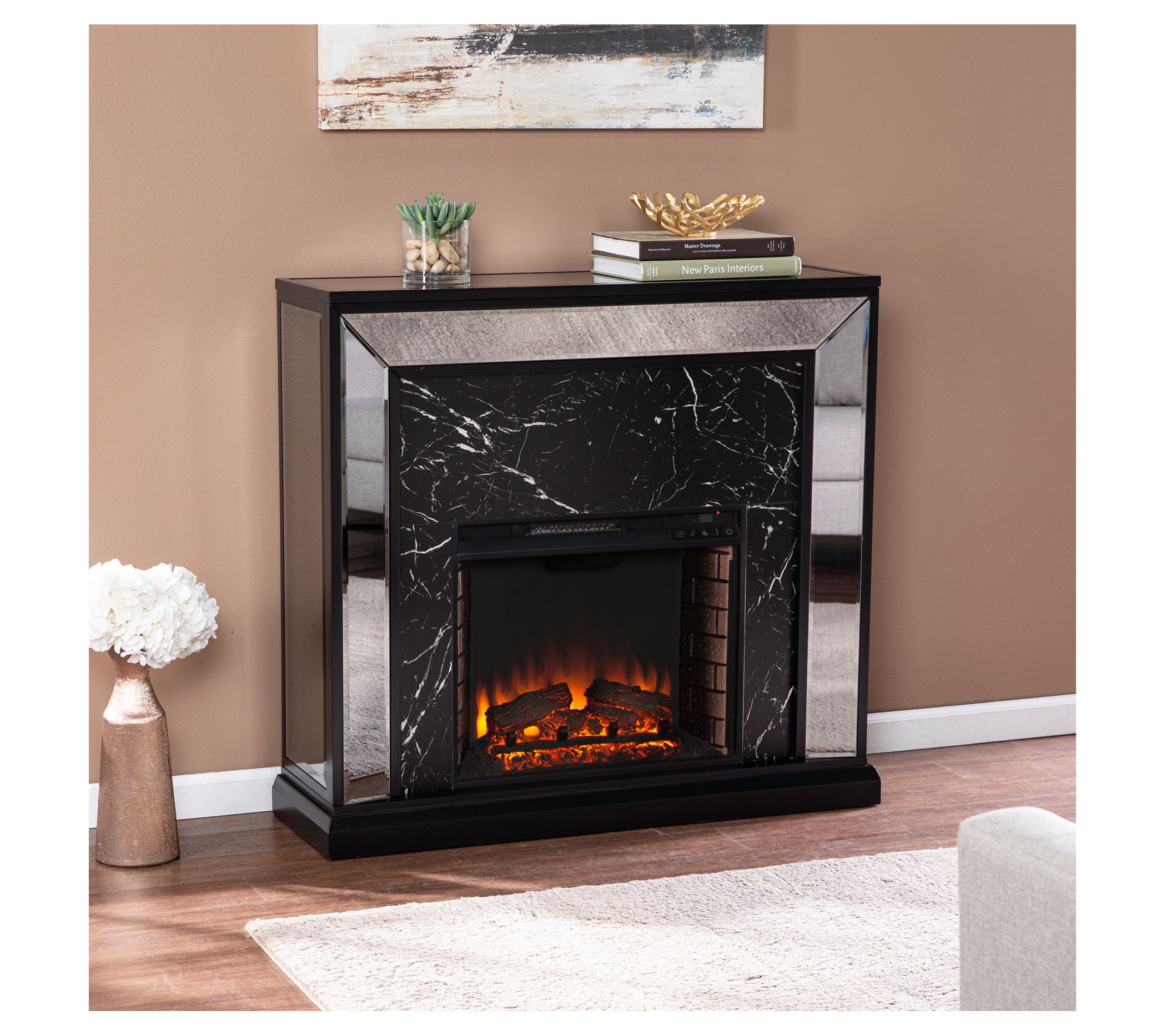 SEI Furniture Trandling Mirrored Faux Marble Fi replace