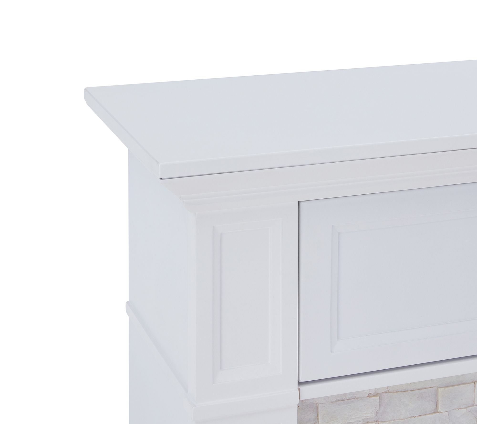 Elegant faux stacked stone with painted finish and faux brick firebox interior