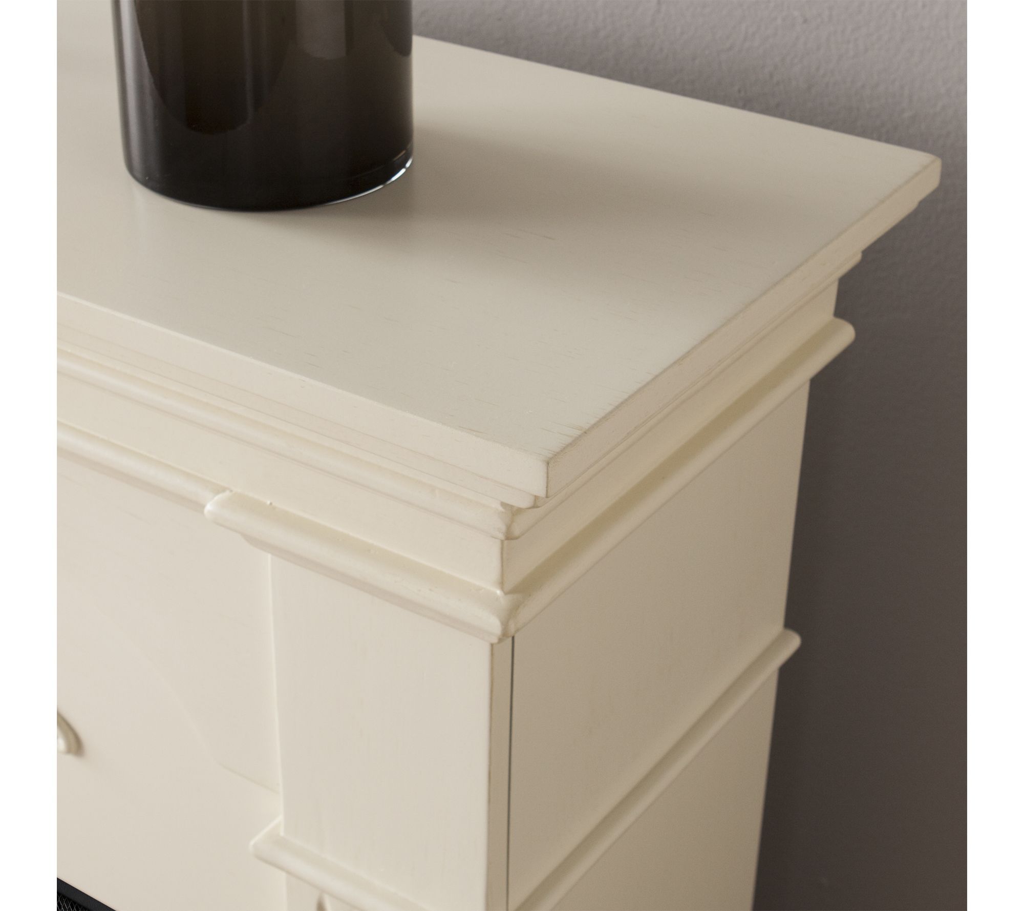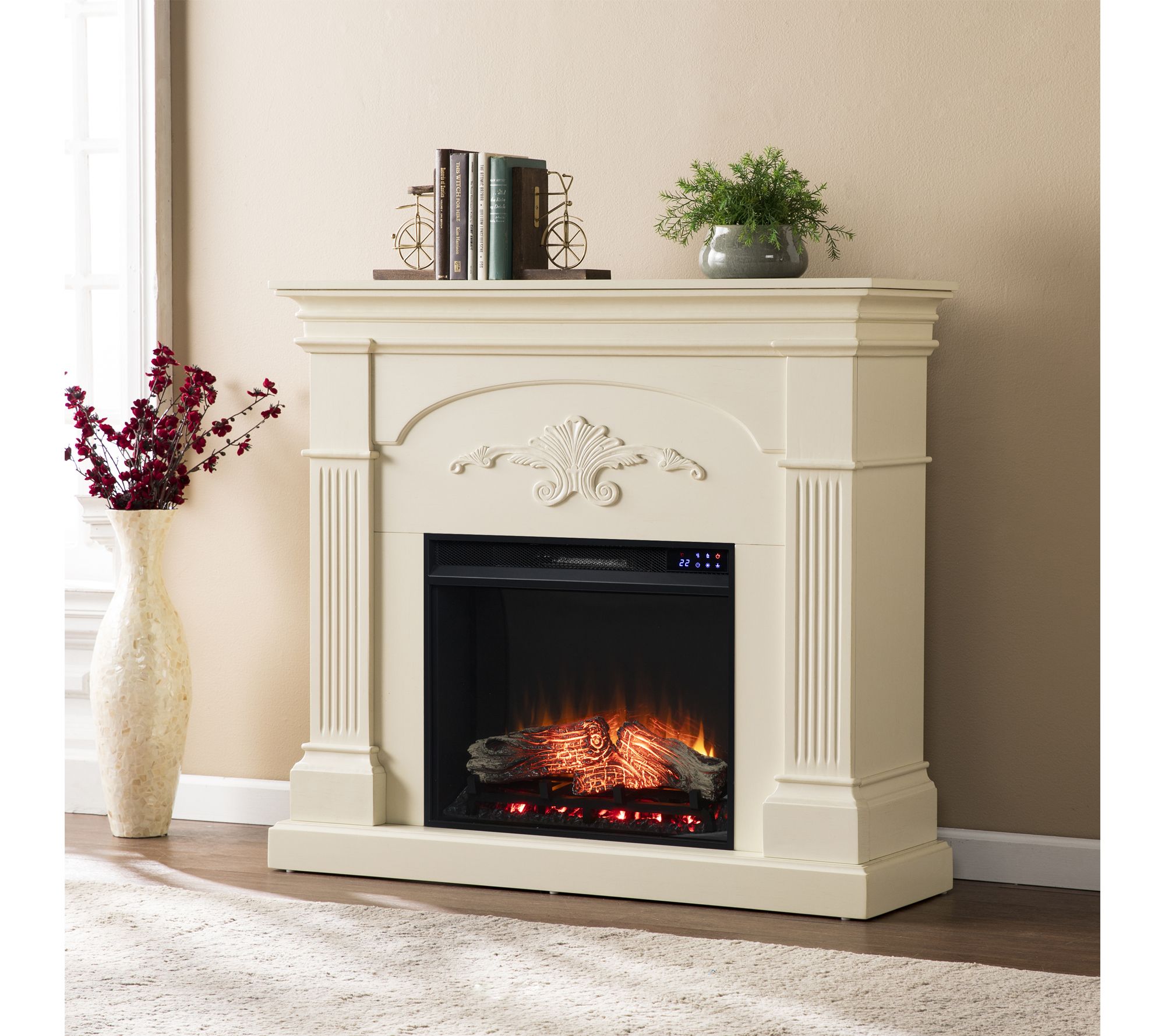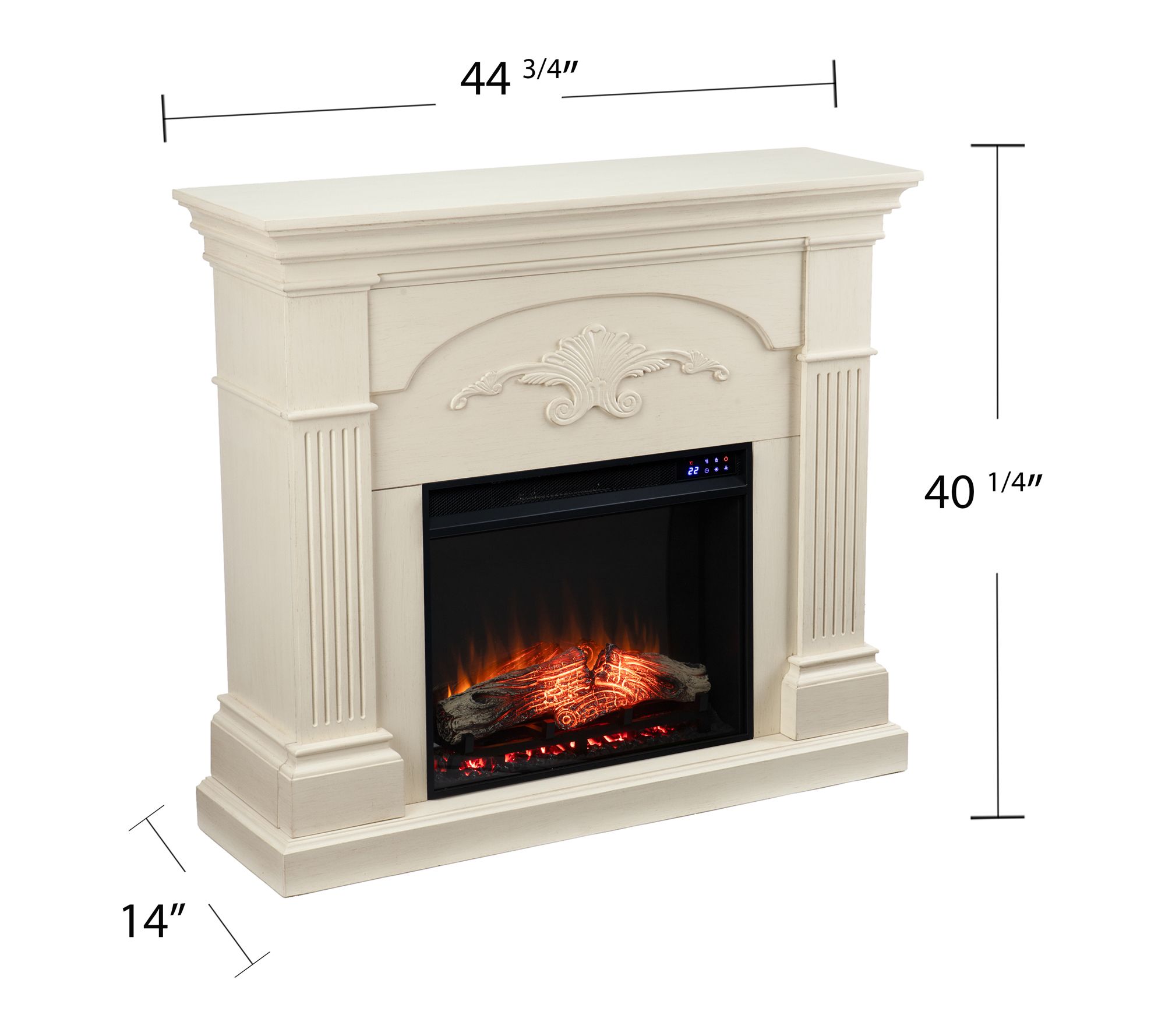 Relax and unwind as flickering LED flames spark cozy charm in this electric fireplace, designed for rooms where comfort meets classic style. Handsome woodwork and a creamy ivory finish create a statement centerpiece, while touch-screen controls and adjustable heat set the scene for movie nights, quiet gatherings, or everyday relaxation. From SEI.