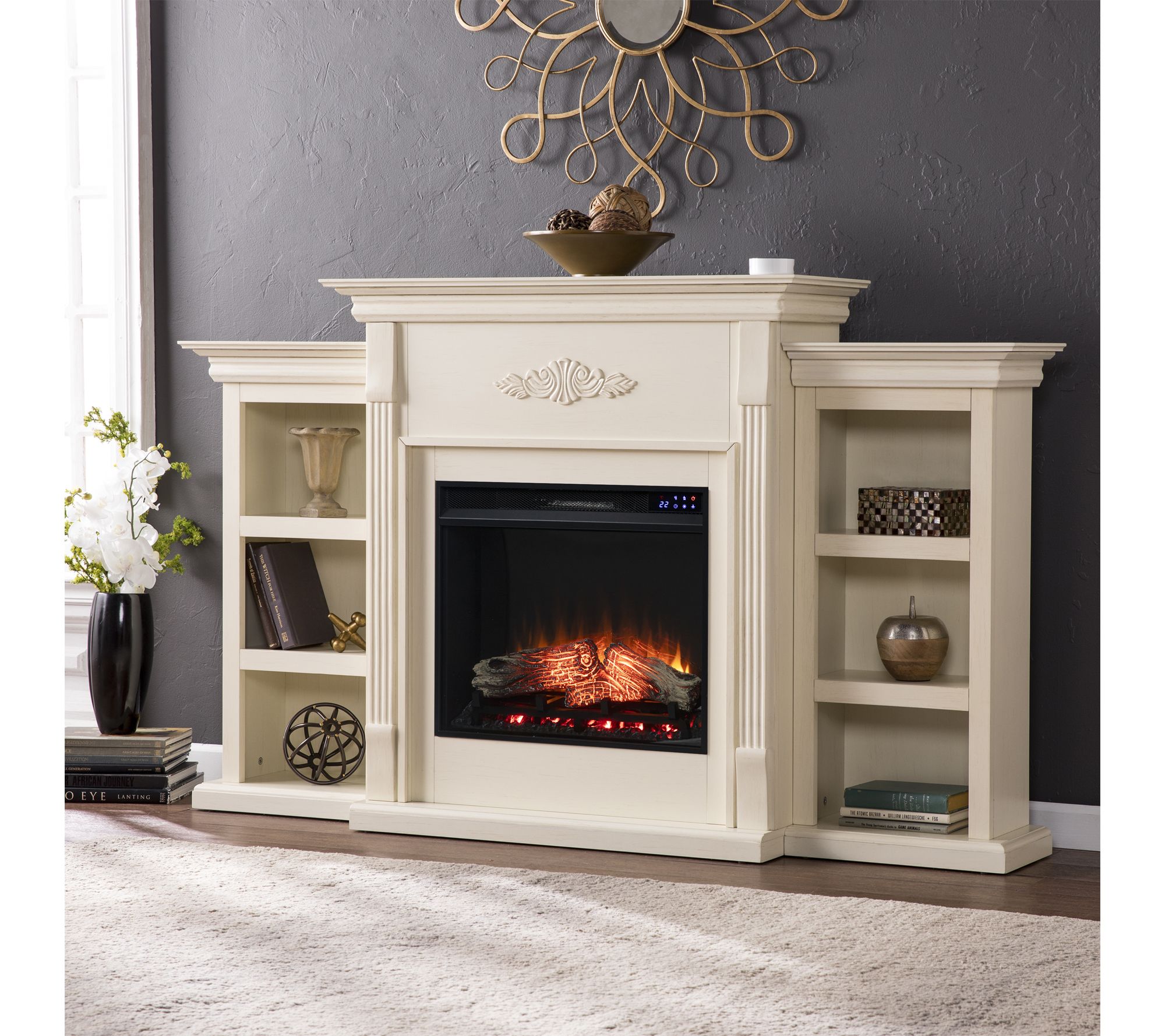Create a cozy gathering spot for movie nights or afternoon reading sessions with this electric fireplace. The touch screen controls, flickering LED flames, and lifelike embers set the mood, while the built-in bookcases organize novels, treasured photos, and favorite keepsakes. Freestanding design lets you enjoy the warmth and ambience in any room, from your living area to your workspace. From SEI.