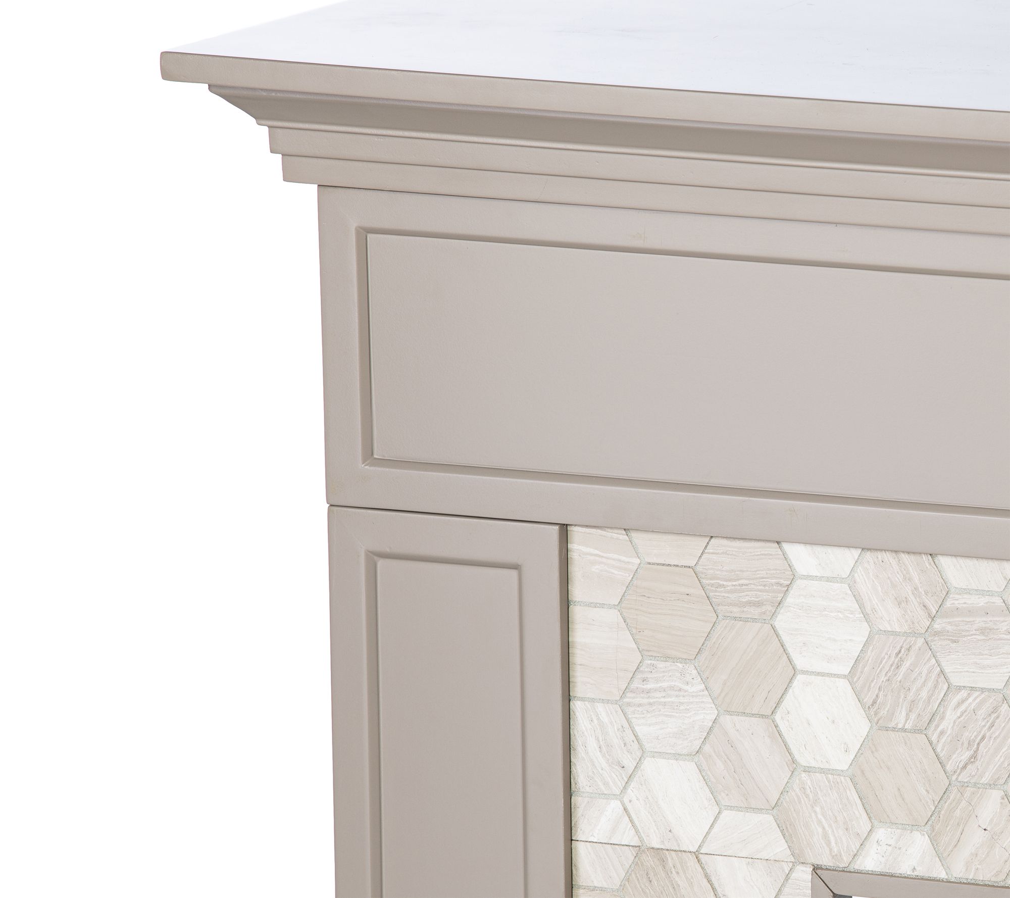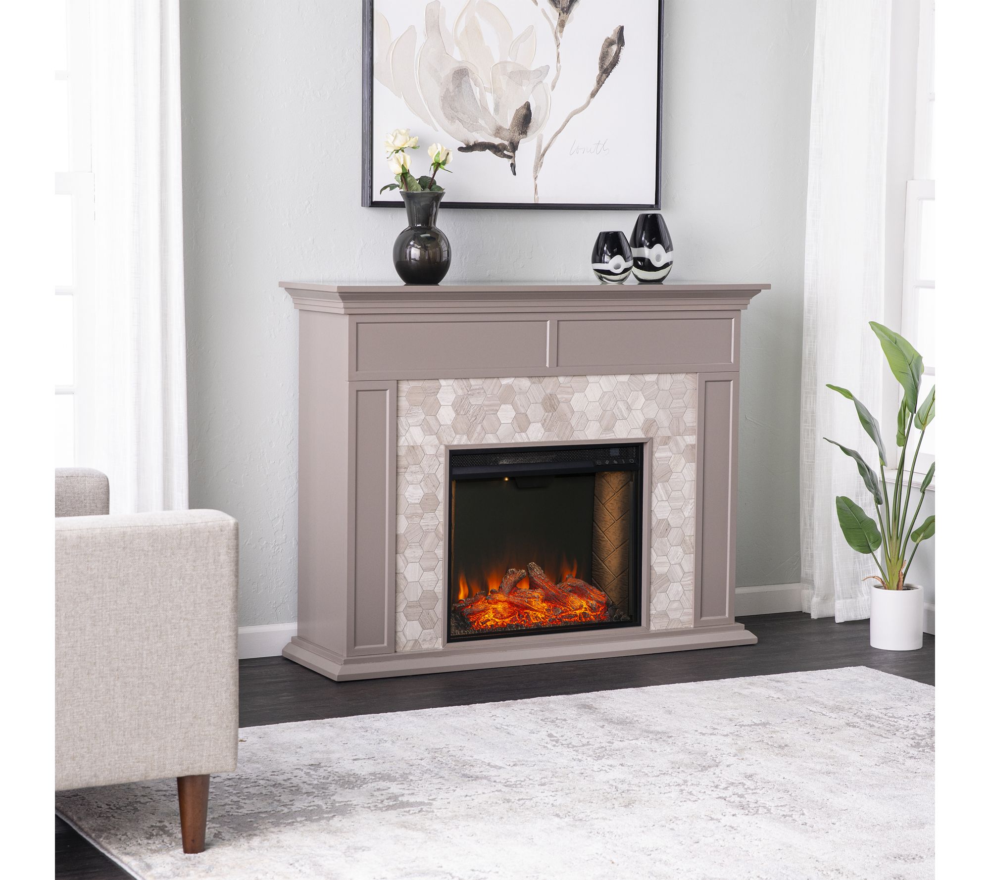 Gathering the family for movie night or curling up with a good book feels even more special with the Torlington Marble Tiled Criss Cross electric fireplace lending warmth and contemporary flair to your space. Highlighted by a criss cross marble tile design and painted finish, this freestanding piece doubles as a striking focal point while gently heating rooms up to 400 sq ft. From SEI.