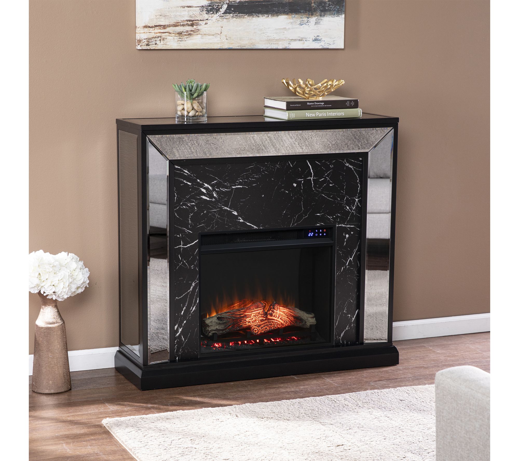 SEI Trandling Mirrored Touch Screen Fireplace with Faux Marble