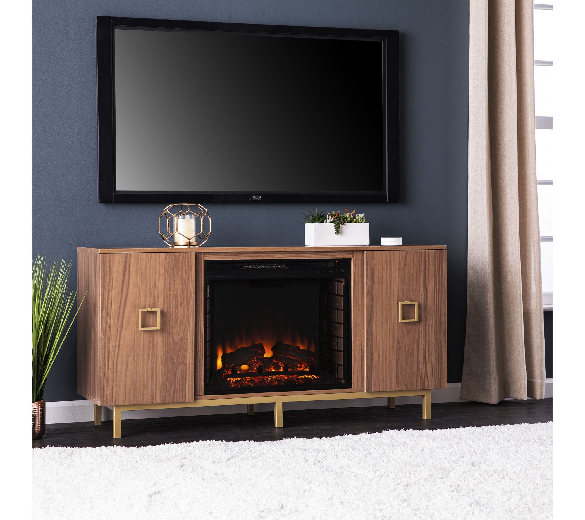 From cozy nights catching up on your favorite shows to laid-back weekends with the whole family, this fireplace media cabinet creates a warm, inviting centerpiece. Flickering LED flames set a soothing mood, while handy storage and a spacious surface blend function with midcentury-inspired flair -- perfect for displaying decor or your flat-screen TV. From SEI.