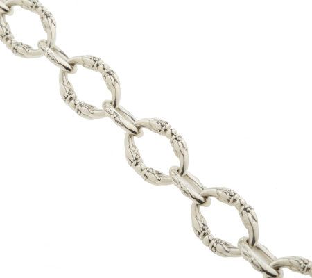 Lovely links. Textured sterling silver oval links alternate with smaller oval links to create this beautiful bracelet. A bezel-set mint quartz gemstone hangs from the last loop, styled with an engraved leave design on the bottom. From SeidenGang Sterling Silver.