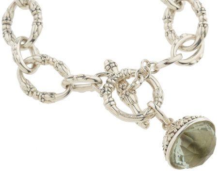 SeidenGang Sterling Oval Link Bracelet w/ Mint Quartz Hanging Charm