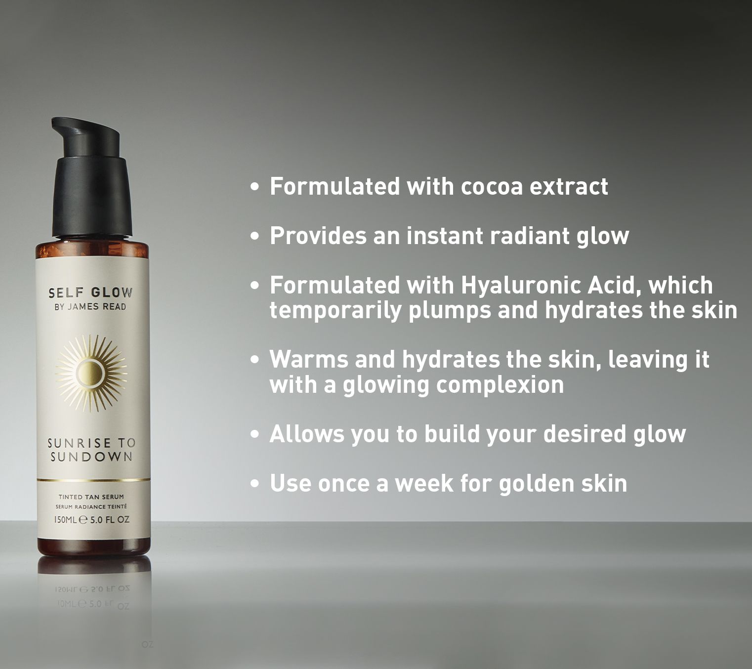 Enjoy instant hydration and a lasting, flawless glow with Sunrise to Sundown Tinted Tan Serum. It contains moisturizers that nourish the skin with moisture and aloe vera which soothes skin with moisture.