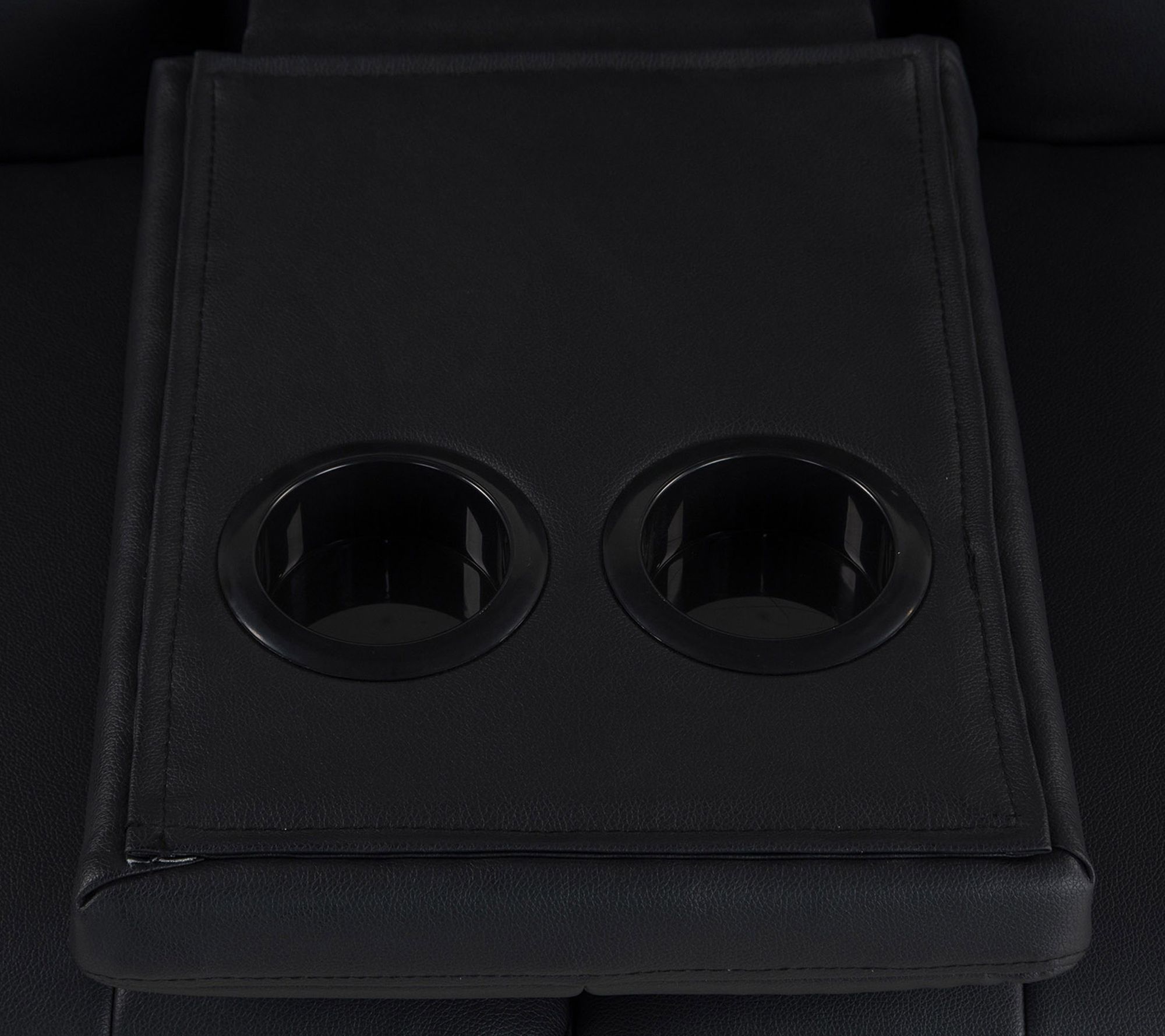 Features tufted back and seat cushions; built-in cup holders; high-density foam; Dream Coils