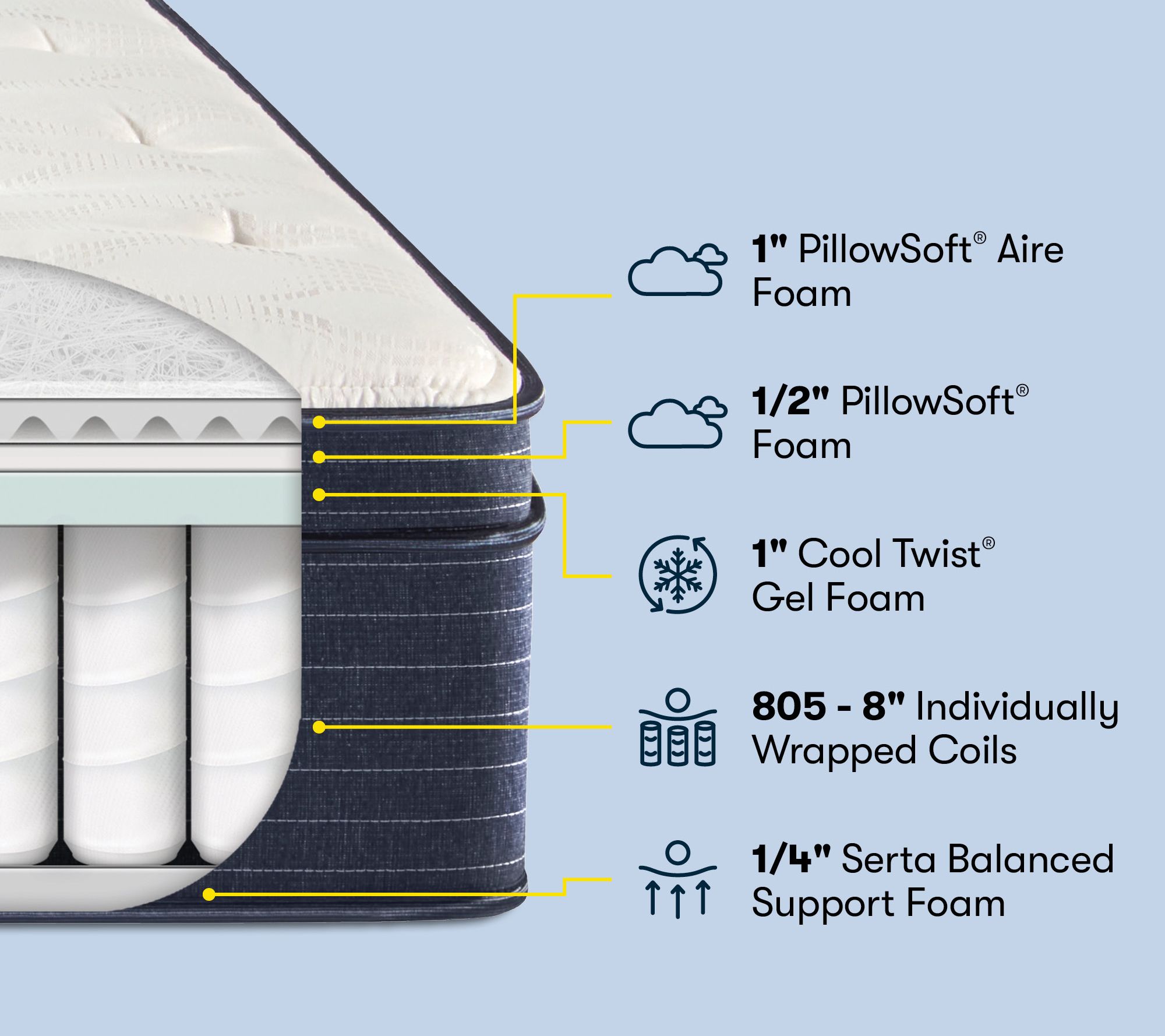 Transform the way you sleep with the incredible comfort of this Serta Classic plush Euro-top mattress. It's constructed with integrated cooling gel, multiple layers of foam, and individually-wrapped coils for the best of softness and support. From Serta.