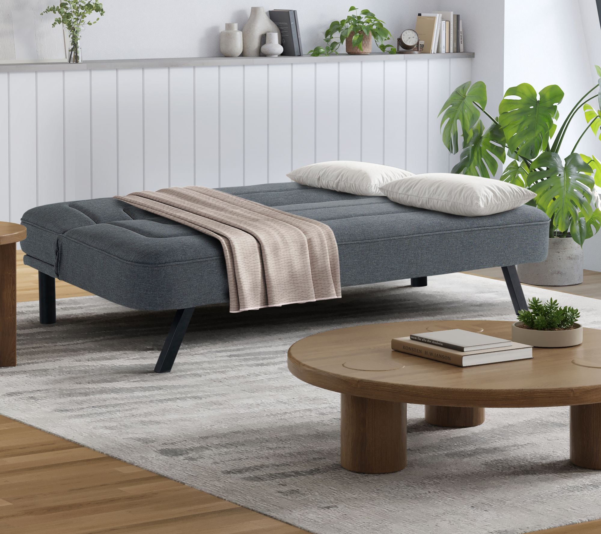 Movie marathons and surprise overnight guests are no problem when your main seating easily adapts to every occasion. Smoothly shifting from sofa to lounger to a comfortable bed, this piece adds style and function to your home -- plus, supportive high-density foam means you won't want to get up. Modern upholstery and sturdy metal legs blend easily into any space. From Serta.