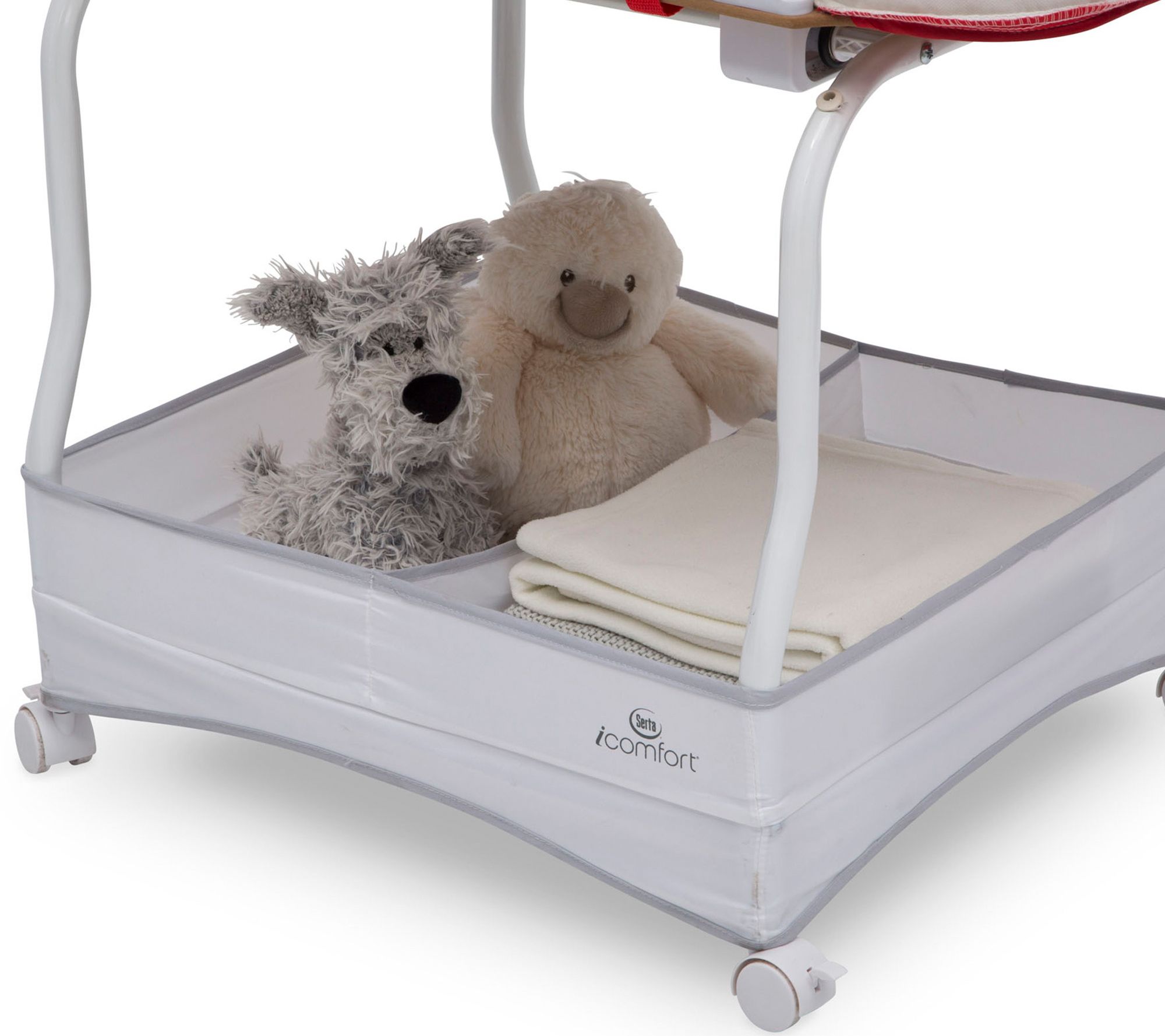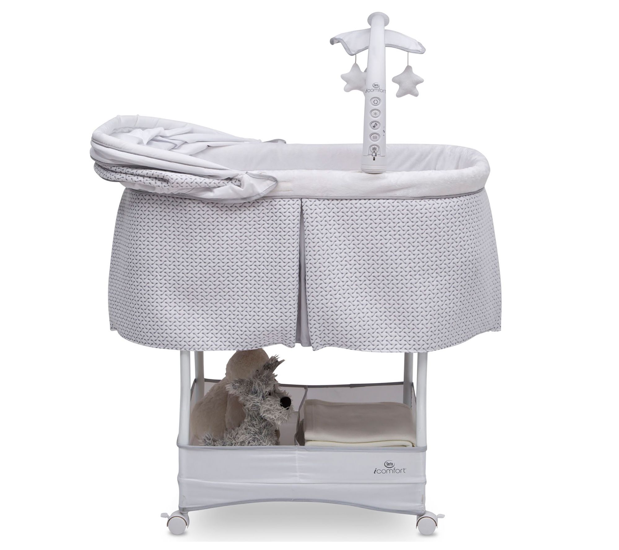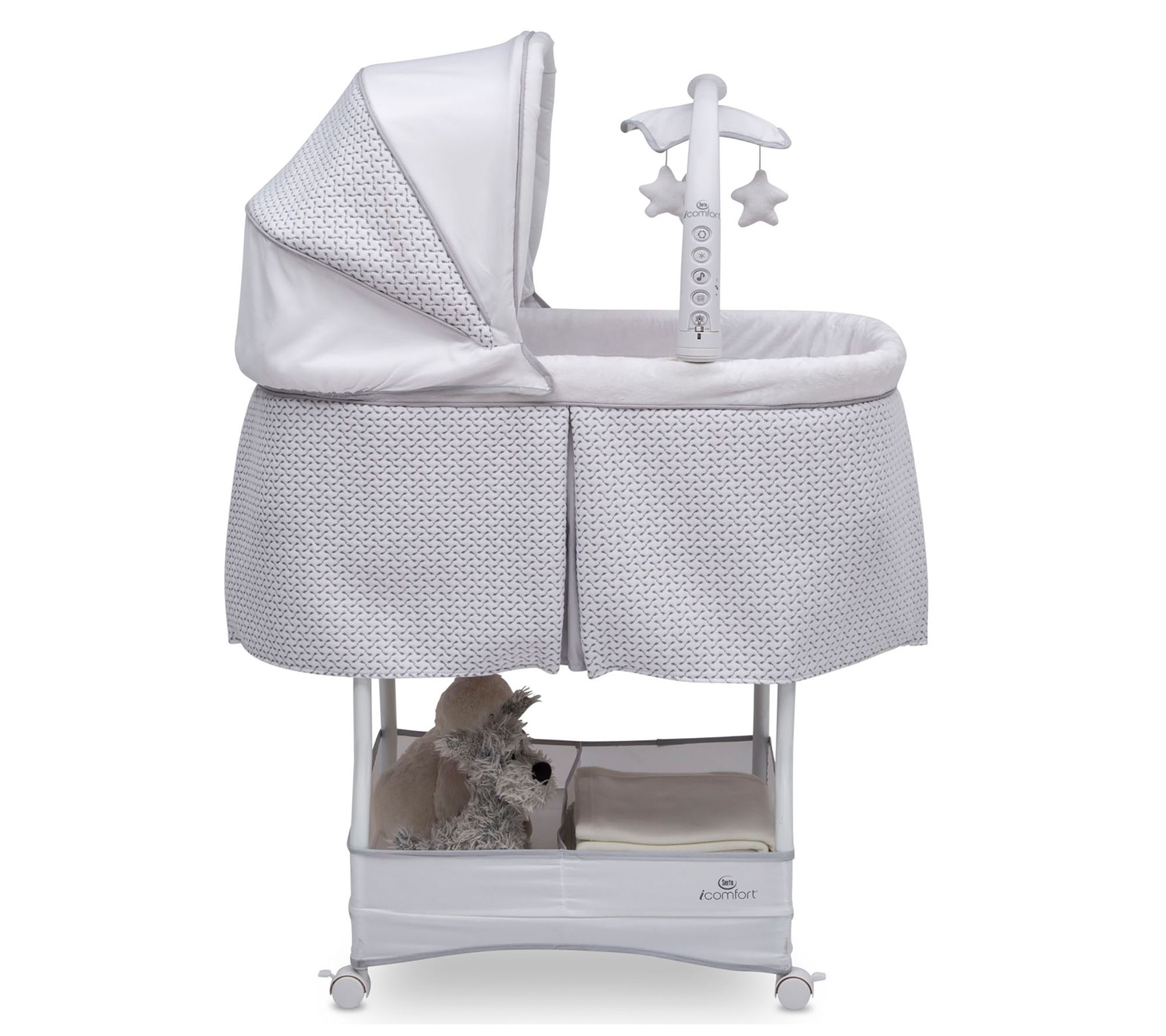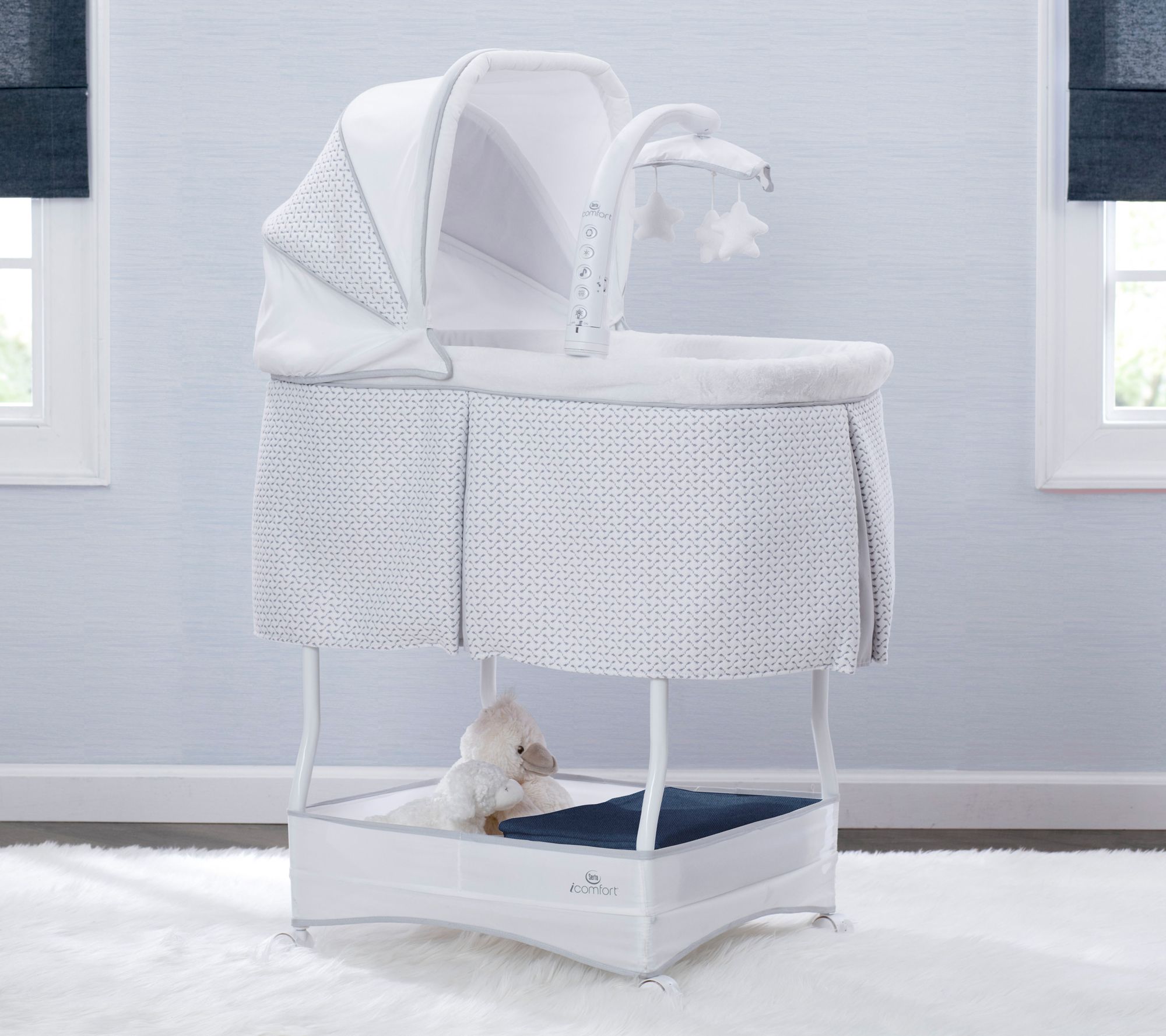 Create a serene sleep space for your little one with this iComfort Auto Gliding Bassinet, complete with soothing sounds, spinning star toys, and a soft-glow nightlight. From Serta.