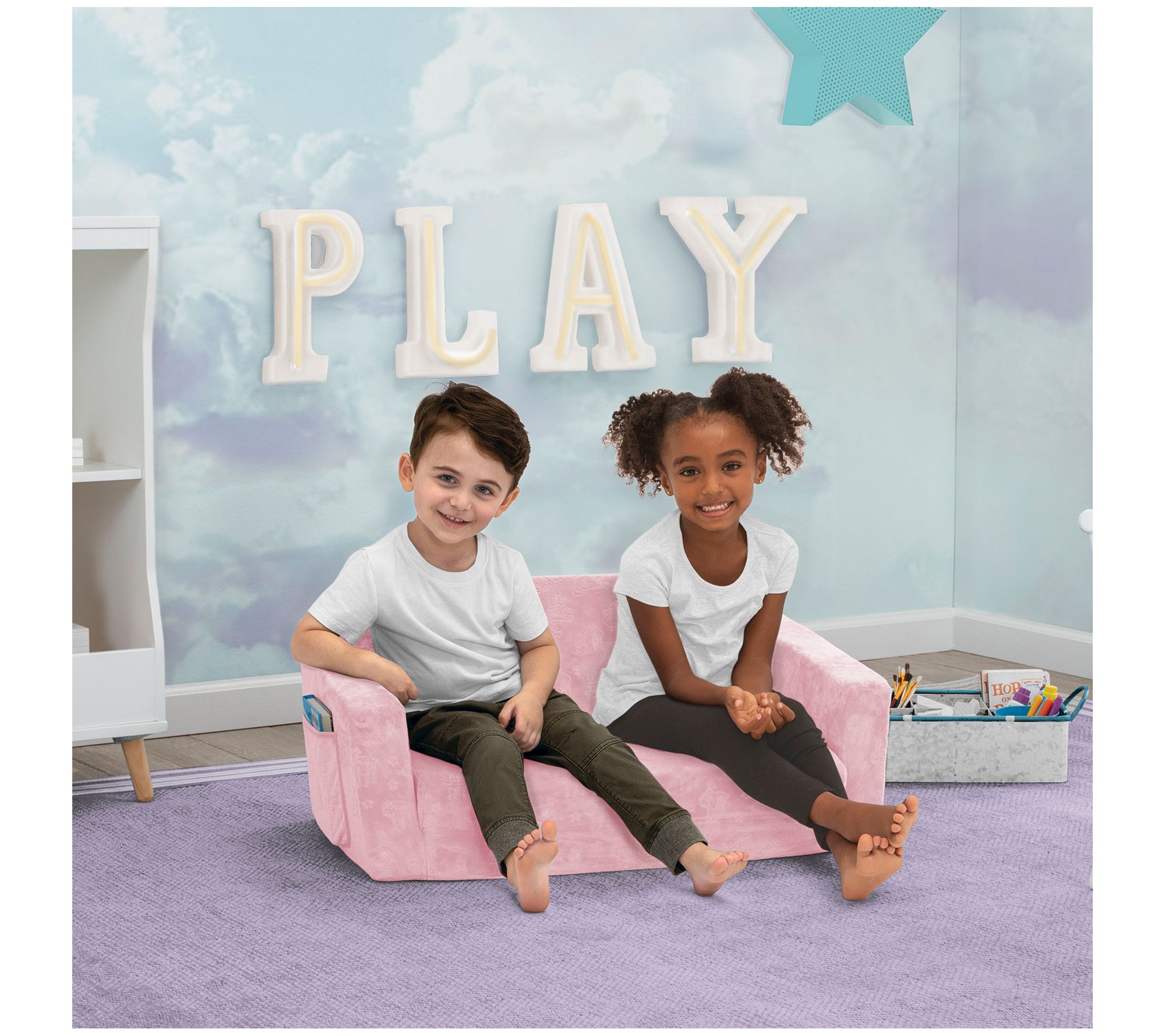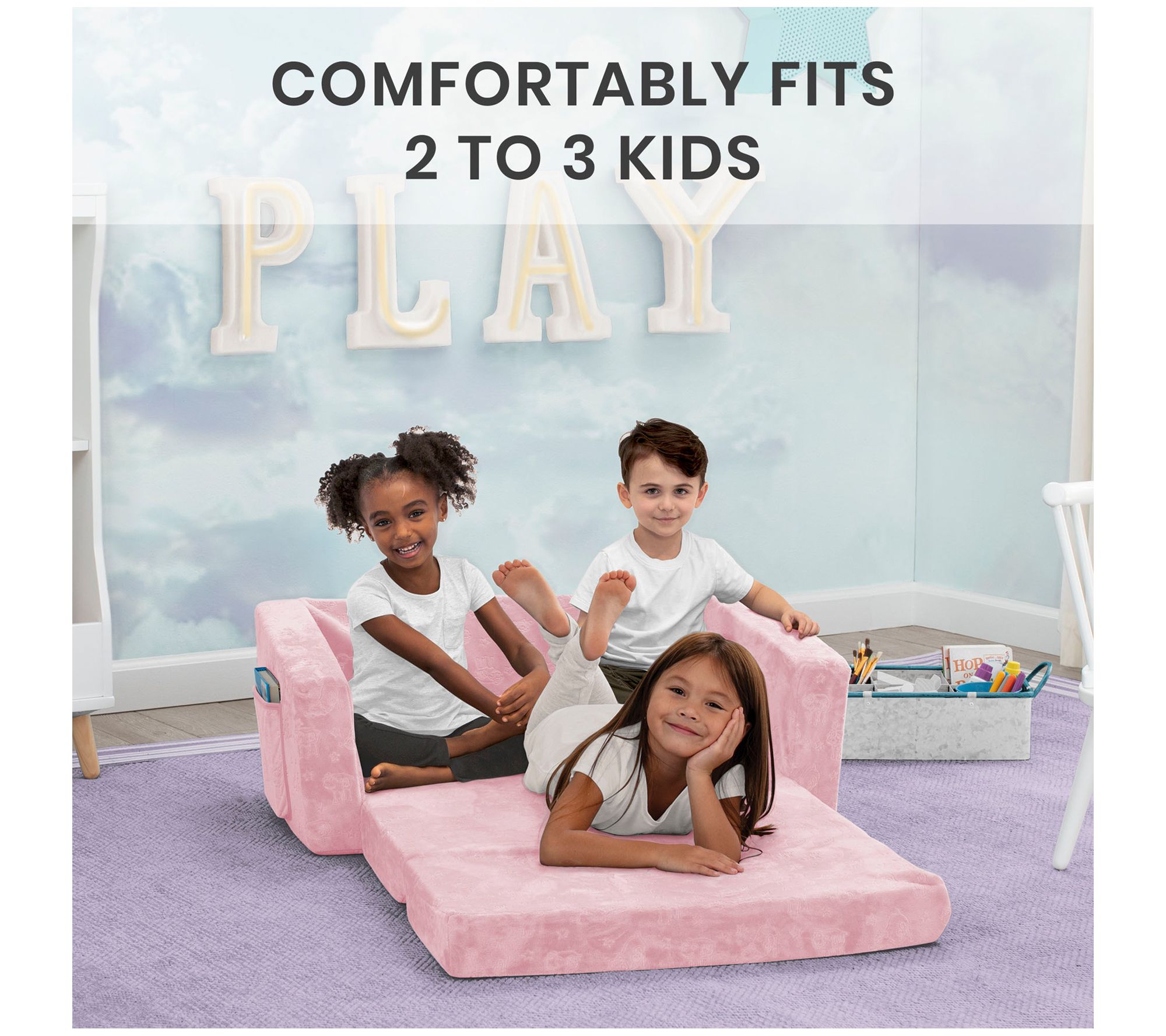 Become the superhero of the sleepover when you add this foam convertible sofa to their play room. Not only does it fold out to become a lounger, its zipper slip cover is machine washable to quickly get rid of spills and snack crumbs. From Serta