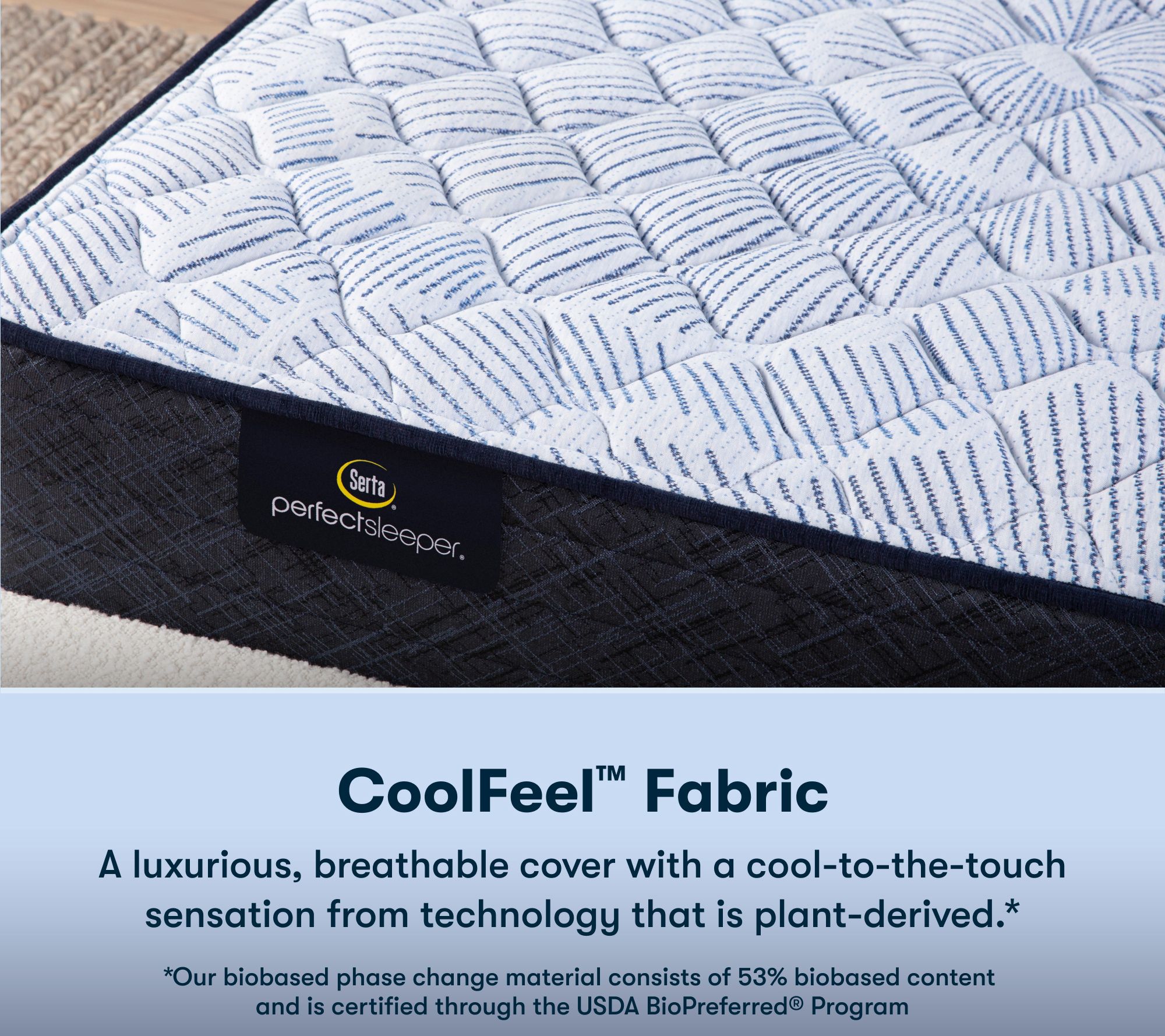 One-sided, eight-layer design with 1" PerfectPure fiber, 1" PillowSoftAire, 0.5" support foam, 0.5" Cool Twist gel memory foam, 1" support foam, 0.375" gel band support, 8" Custom Support 522-coil system, and 1" balanced support pad