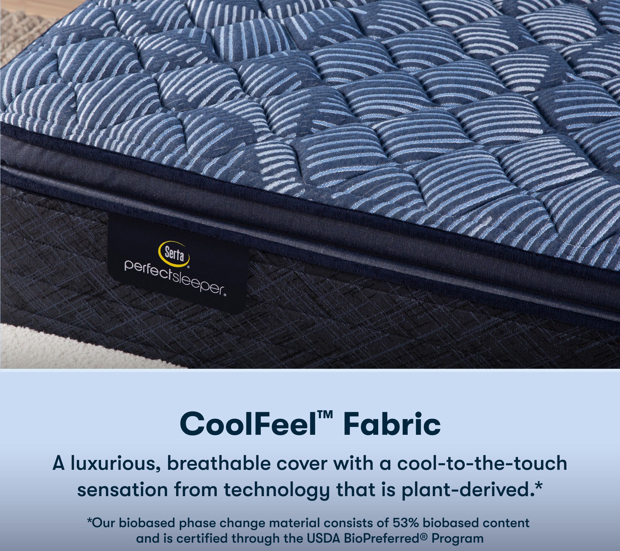 Comfortable, contouring, and incredibly supportive, the Perfect Sleeper Cobalt Calm mattress combines a zoned coil system with cooling gel and memory foam for a restorative night's rest. From Serta.