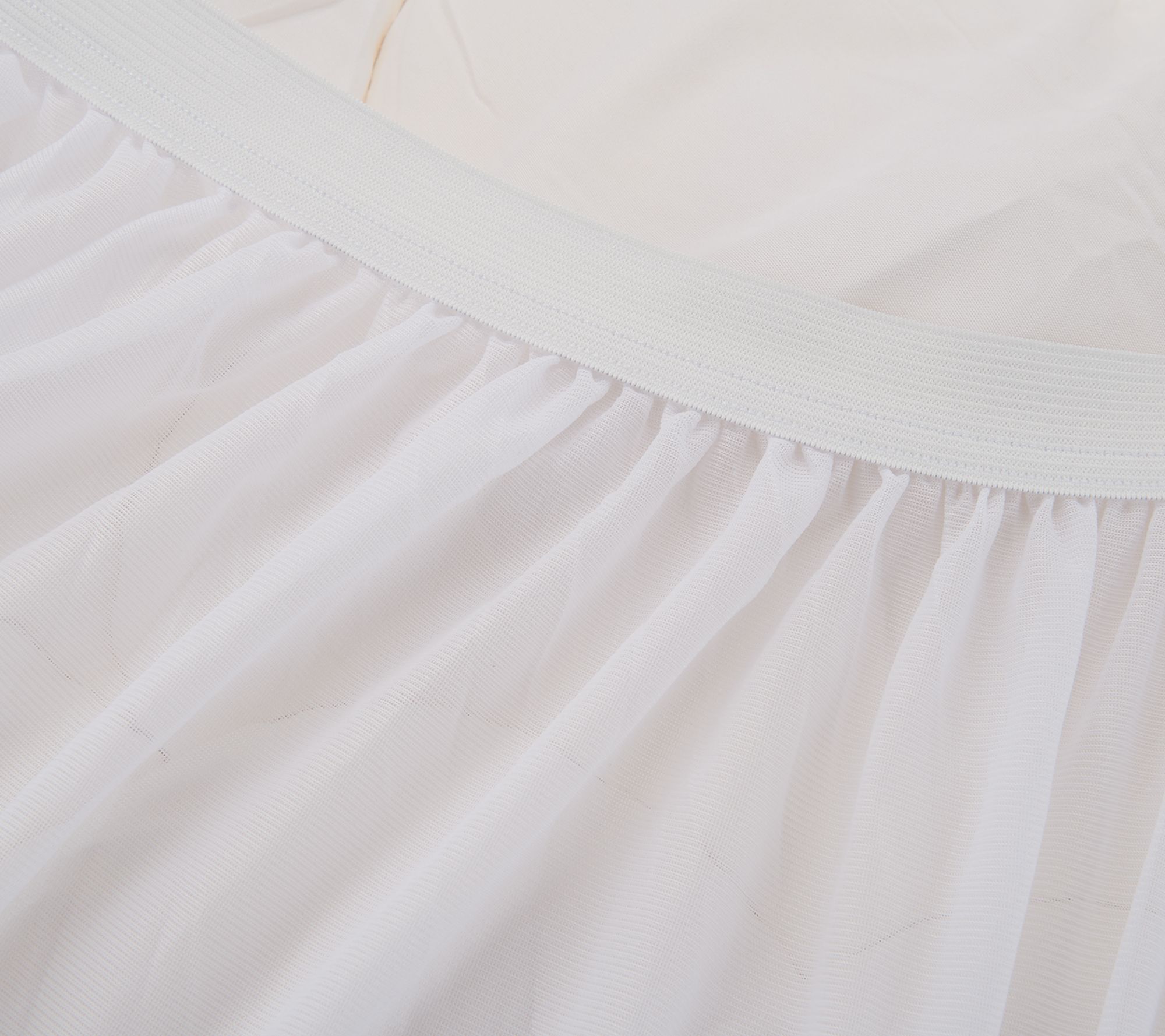 Skirted bottom with 1" wide boxer elastic hem to keep topper snug on mattress