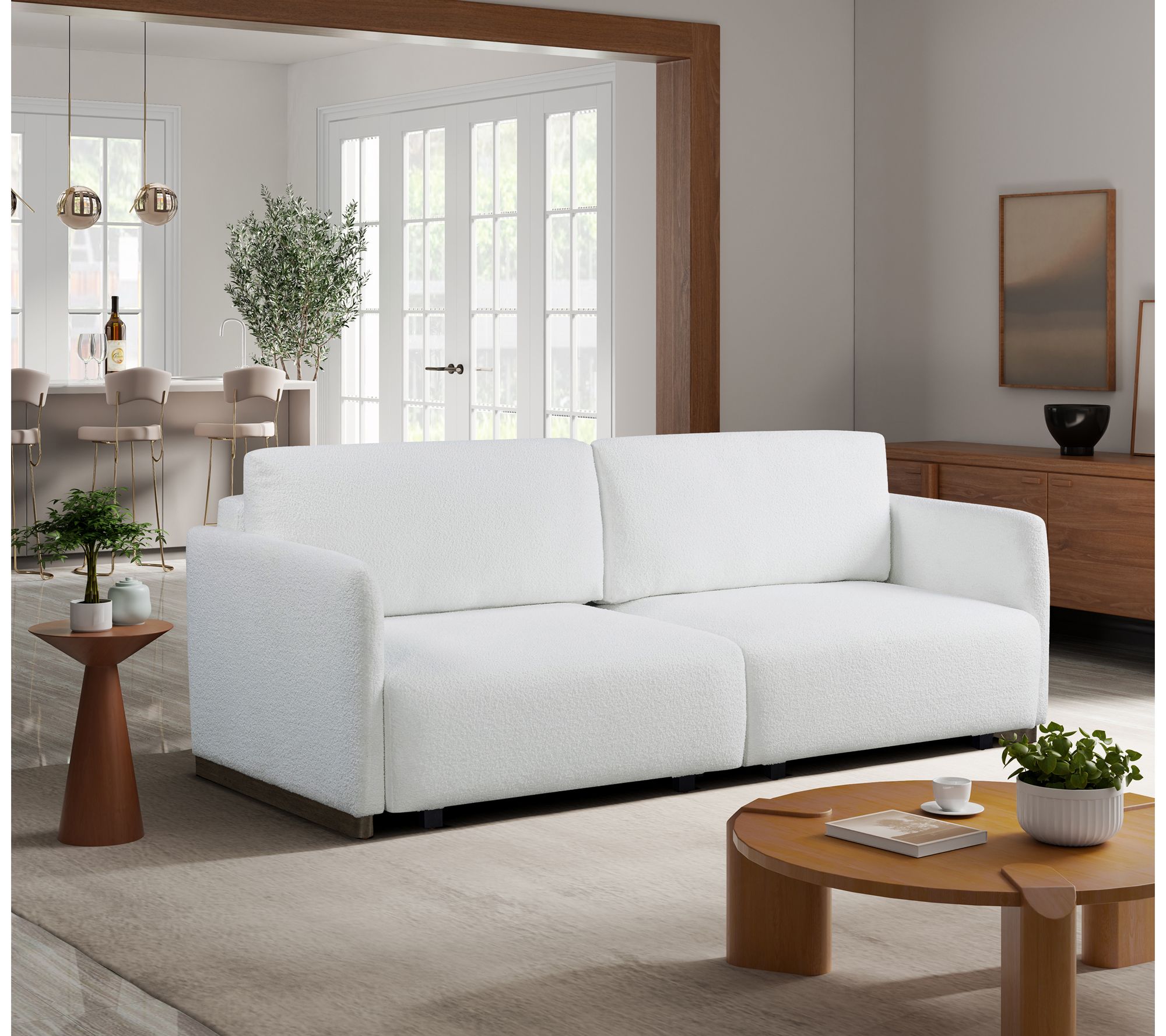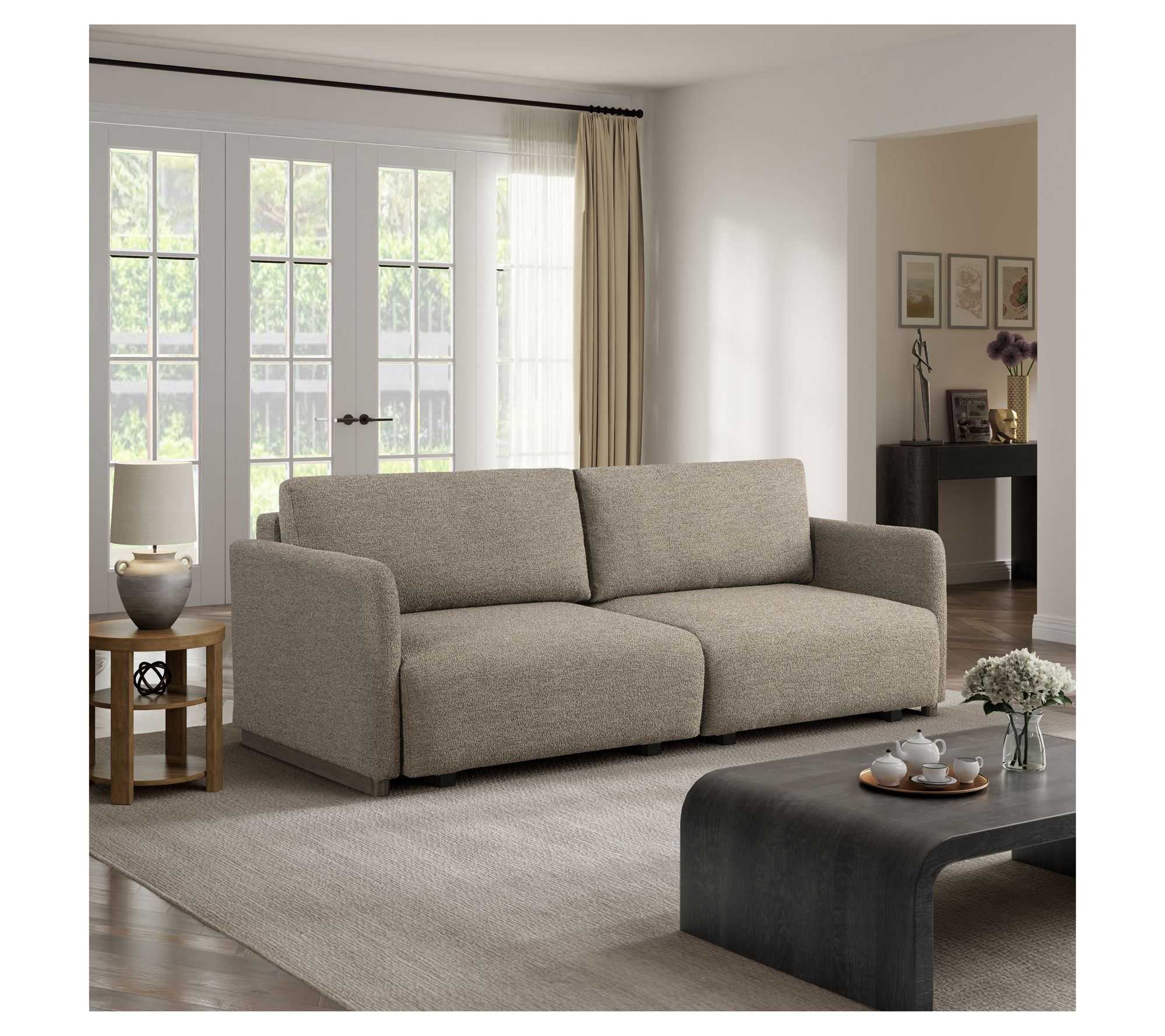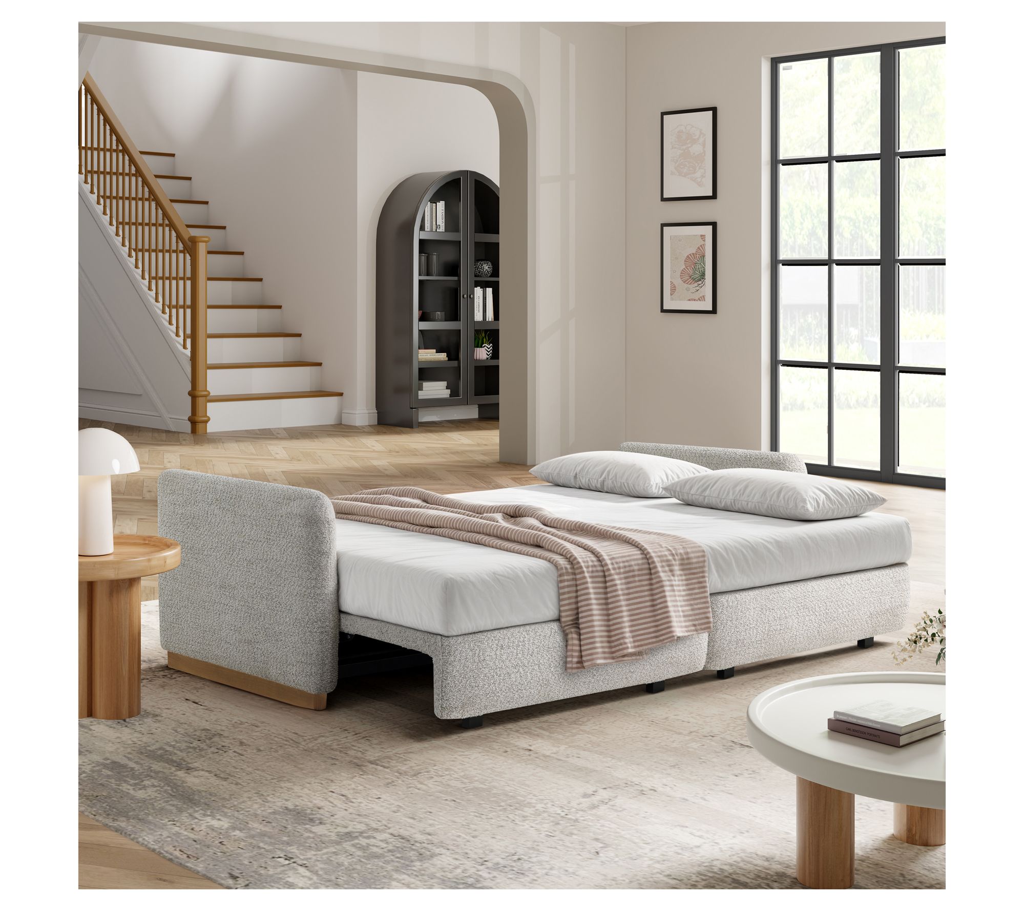 Effortlessly transforms from sofa to bed with pull-out seats on smooth glides