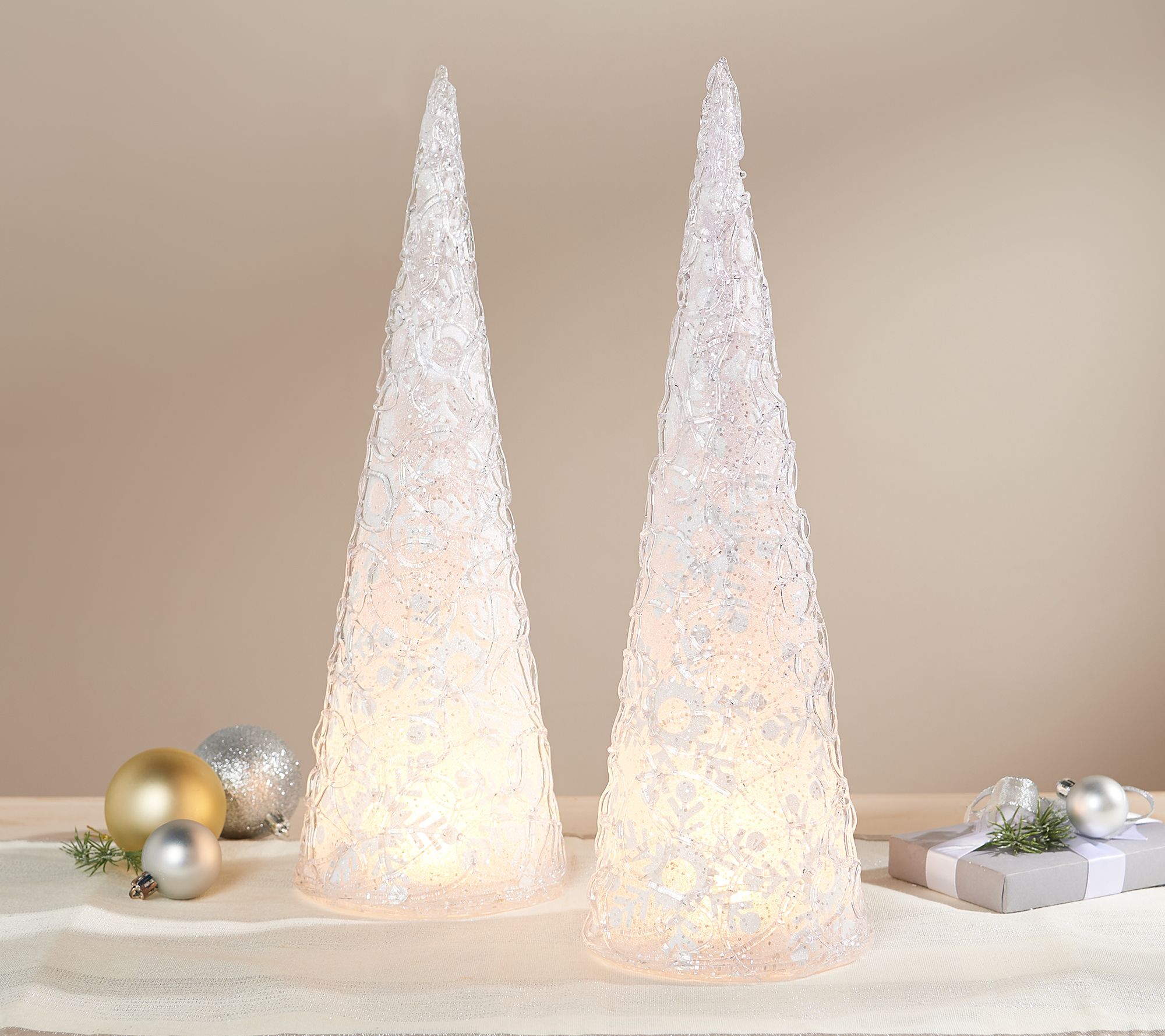 Set of (2) 15" Illuminated Snowflake Cone Trees by Valerie