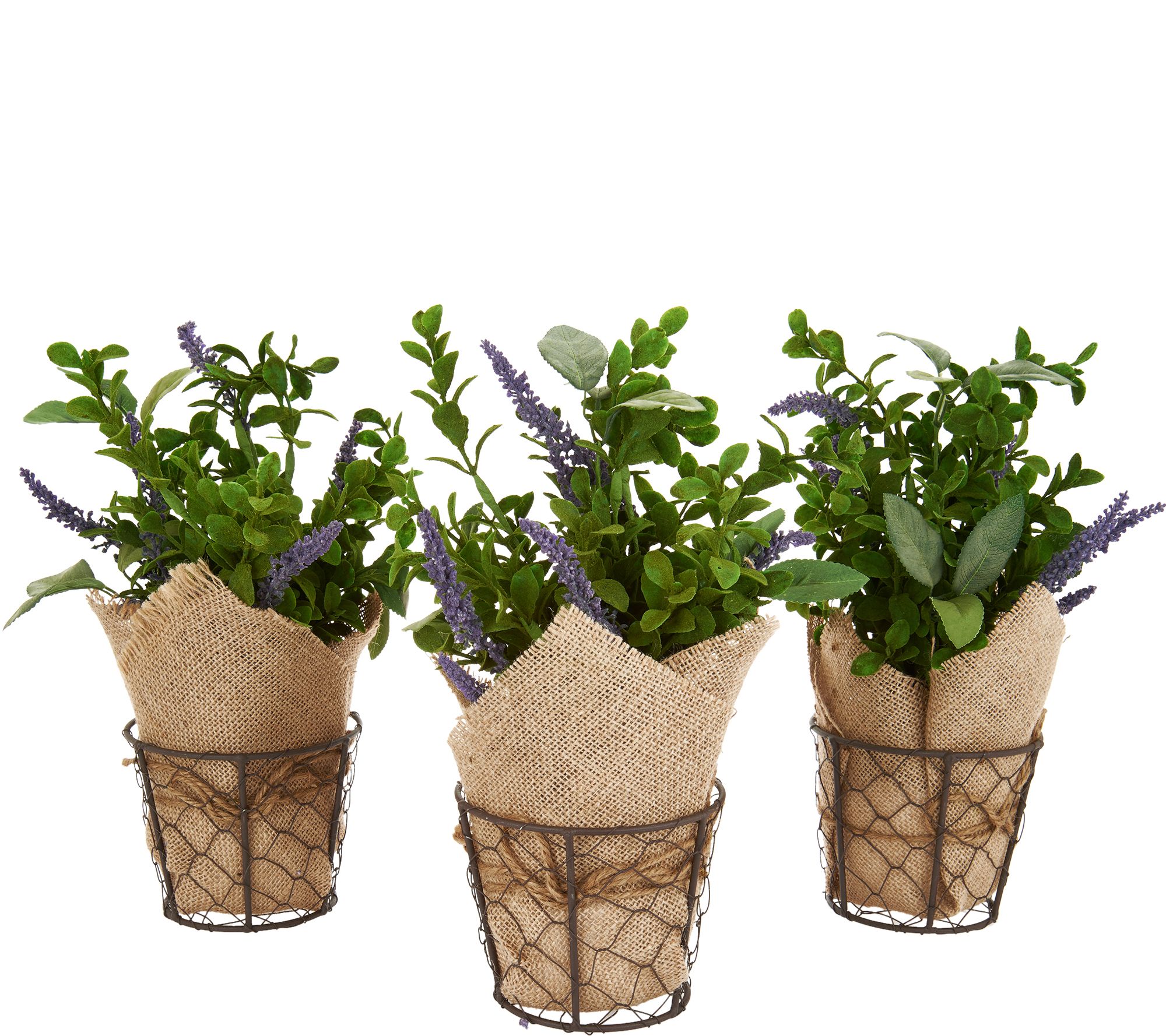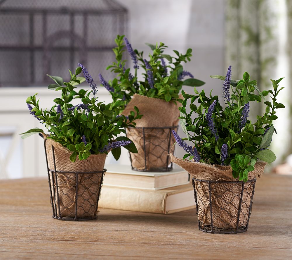 Set of (3) 11" Potted Herbs with Burlap by Valerie