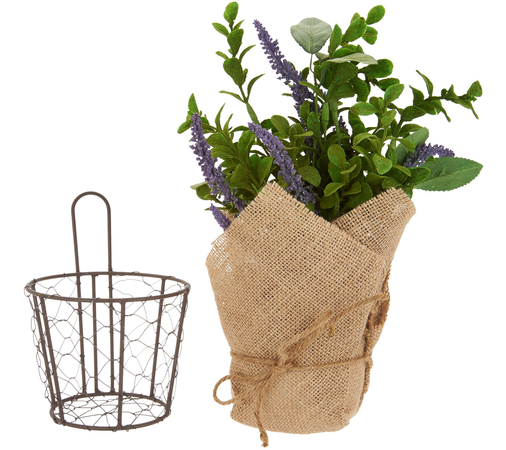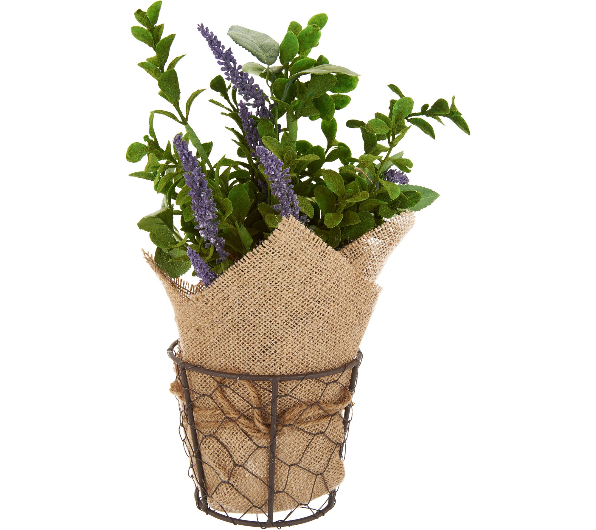 • Realistic greenery wrapped in burlap