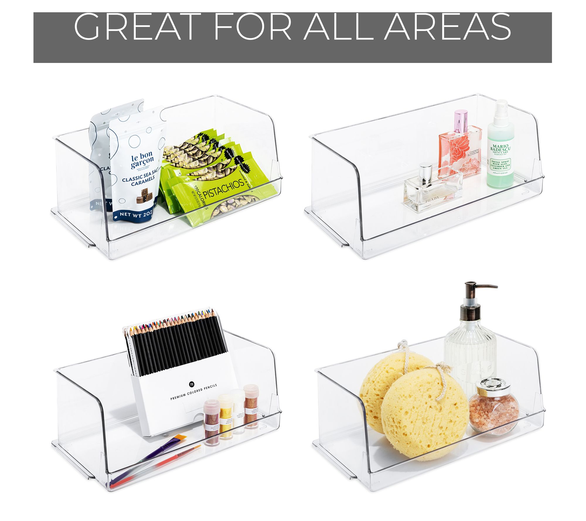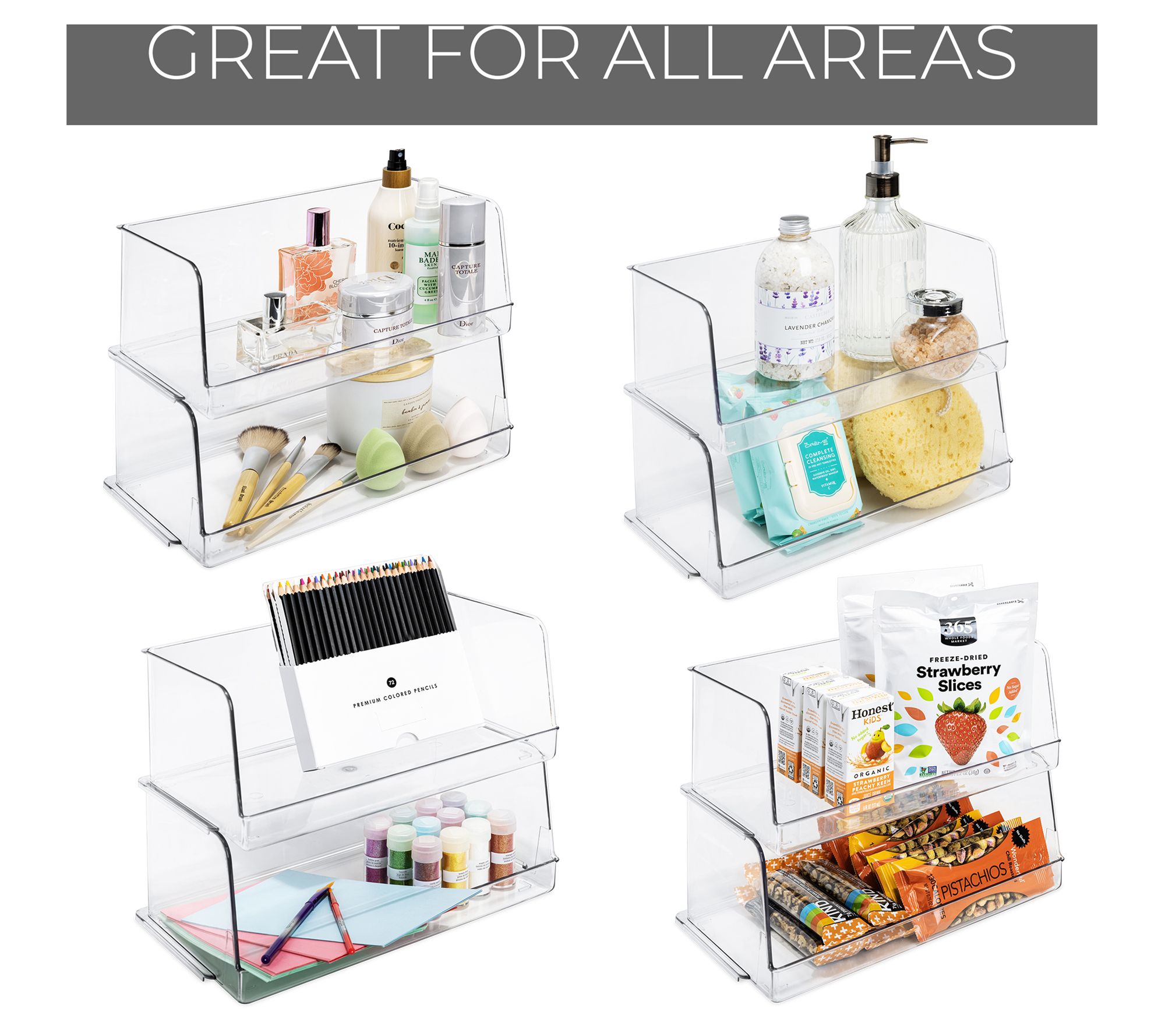 Instantly create more space in a refrigerator, pantry, or cabinet using this clever set of stackable bins, featuring a clear design that lets you quickly and easily find what you're looking for. From Smart Design.
