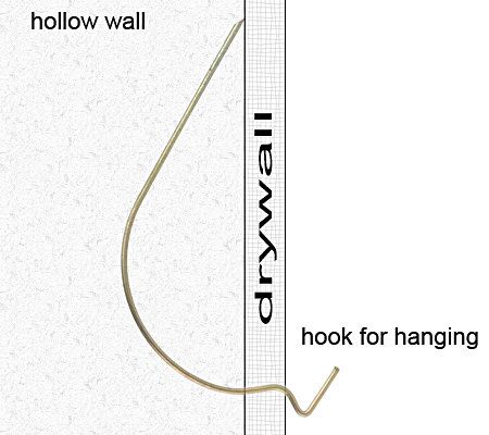 No tools are required--they simply mount directly into the wall. Just pick your spot and insert by hand. Made of heavy gauge wire, the set includes 10 3-3/4"L hangers with a 1/2" hook end. The hook remains exposed once installed. Each hanger holds up to 150 lbs. Actual results may vary depending on the type of drywall.