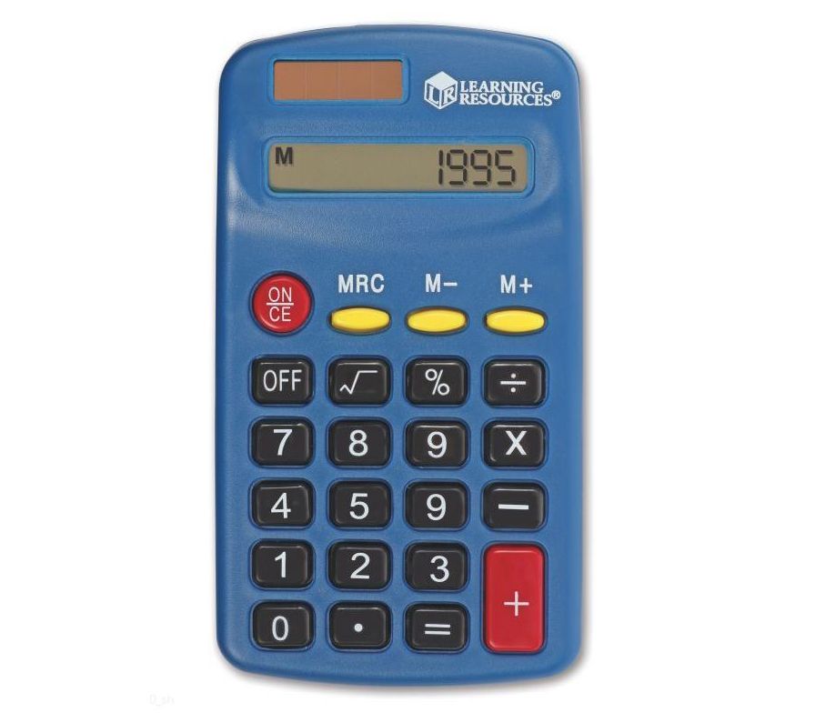 Teach basic calculator and math skills with this simple to use primary calculator set. The cheery, bright blue calculators let students start with the basics and work up to percents and square. From Learning Resources.