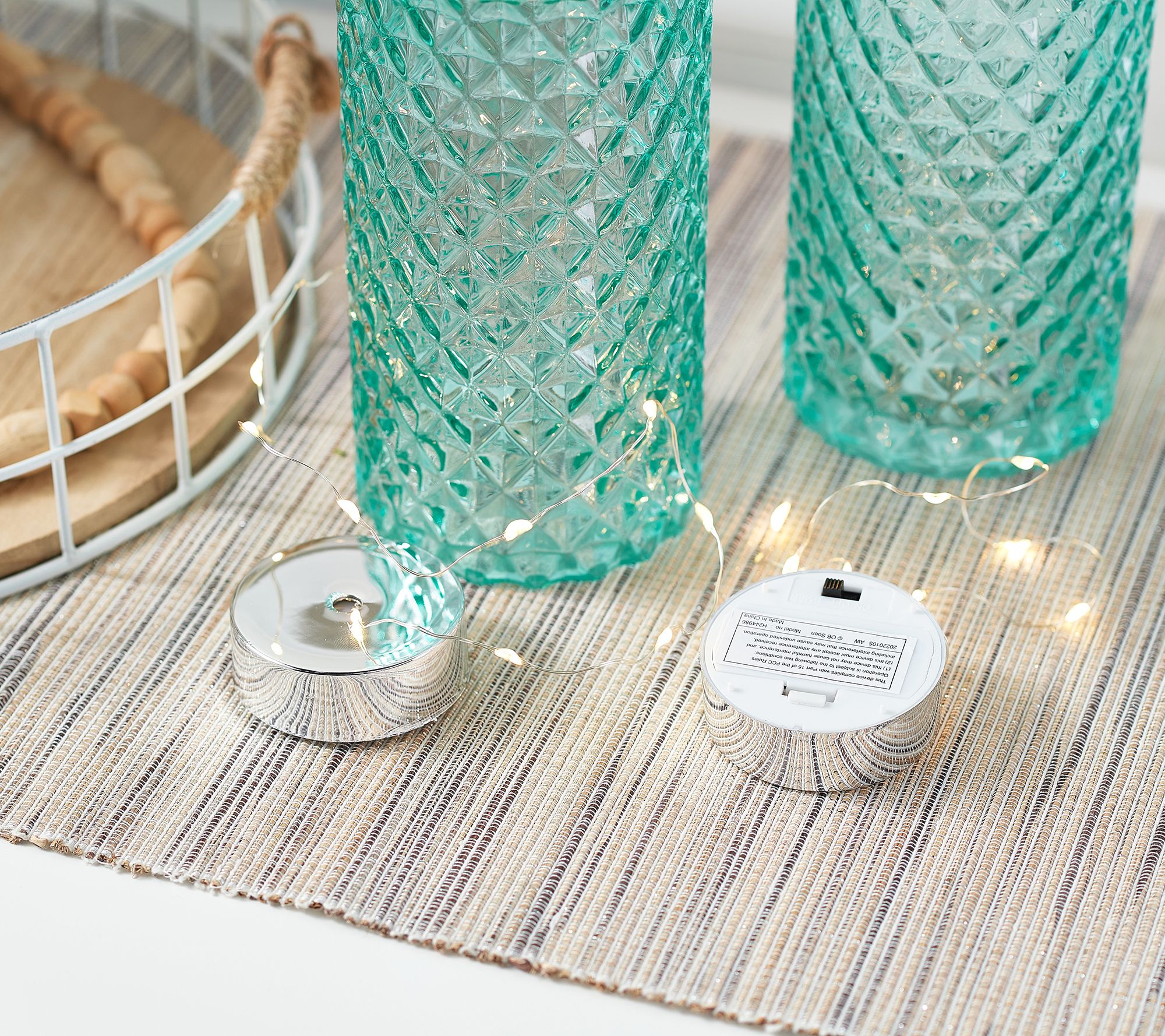 Set of 2 6.5" Illuminated Quilted Glass Pillars by Valerie